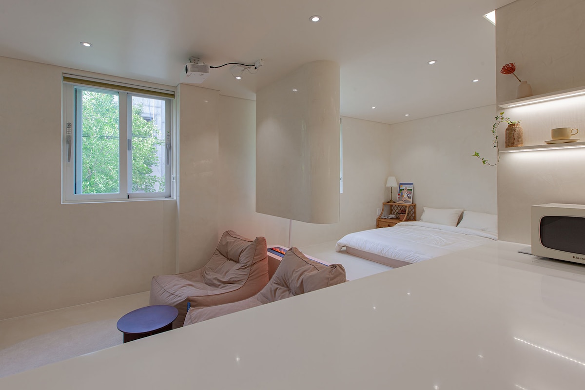 Tai privatus, privatus būstas, esantis Seosin-dong, Jeonju-si centre, Jeollabuk-do. Teritorijos pabaiga, STULPELIS (), vietovės pabaiga atliekama naudojant adresą, 5-gil, 7-1. POLE571 (Annnn) 은: „Niekur negaliu eiti.“ (Nėra vietos, į kurią negalėčiau vykti.) Jeonju, pažįstama turistų lankoma vieta, bet mėgaukitės būsto, esančio bendroje vietovėje, ypatingumu, Norėjau jaustis taip pat, kaip ir Jeonju. Spindulio projektorius su ekranu ir garsiakalbiu Privati ir atpalaiduojanti sūkurinė vonia ir Jame yra jauki vidaus erdvė. Be to, priešais apgyvendinimo vietą yra gražus Seosincheonbyeon Jeonju mieste. Galite pasivaikščioti ir bėgioti taip, kaip galvojate, Galite mėgautis daugybe turistų lankomų vietų, restoranų ir sudėtingų kultūrinių erdvių Jeonju - jau labai žinomame turistiniame mieste. Mėgaukitės geresniu atsipalaidavimu ir atsipalaidavimu POLE571:)