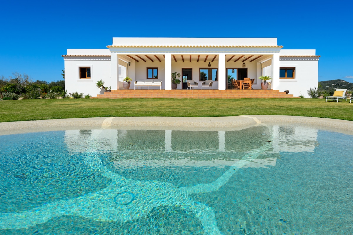 Tradicinis Ibizan namas, modernus ir skoningai dekoruotas, įsikūręs netoli Santa Gertrudis kaimo, aptvertoje 15 000 kvadratinių metrų žemėje. 500 metrų kelias skiria kelią nuo gražios vilos, iš kurios atsiveria gražūs vaizdai į kalnus. Namą sudaro vienas aukštas, siūlantis komfortą, ramybę ir gerovę, nes tai ideali vieta atsipalaiduoti saloje.