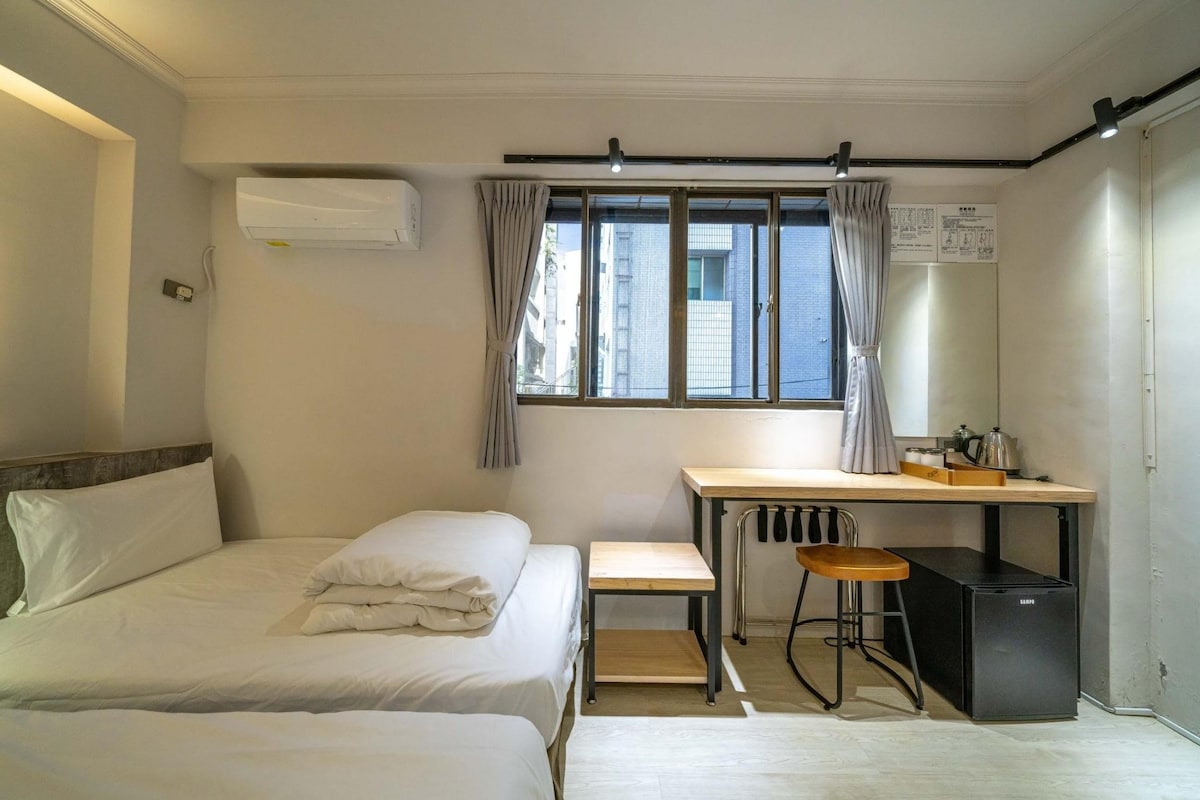 Hualien Island kiparisų dvivietis kambarys su dvigule lova ir dvigule lova (privatus vonios kambarys; netoli traukinių stoties)