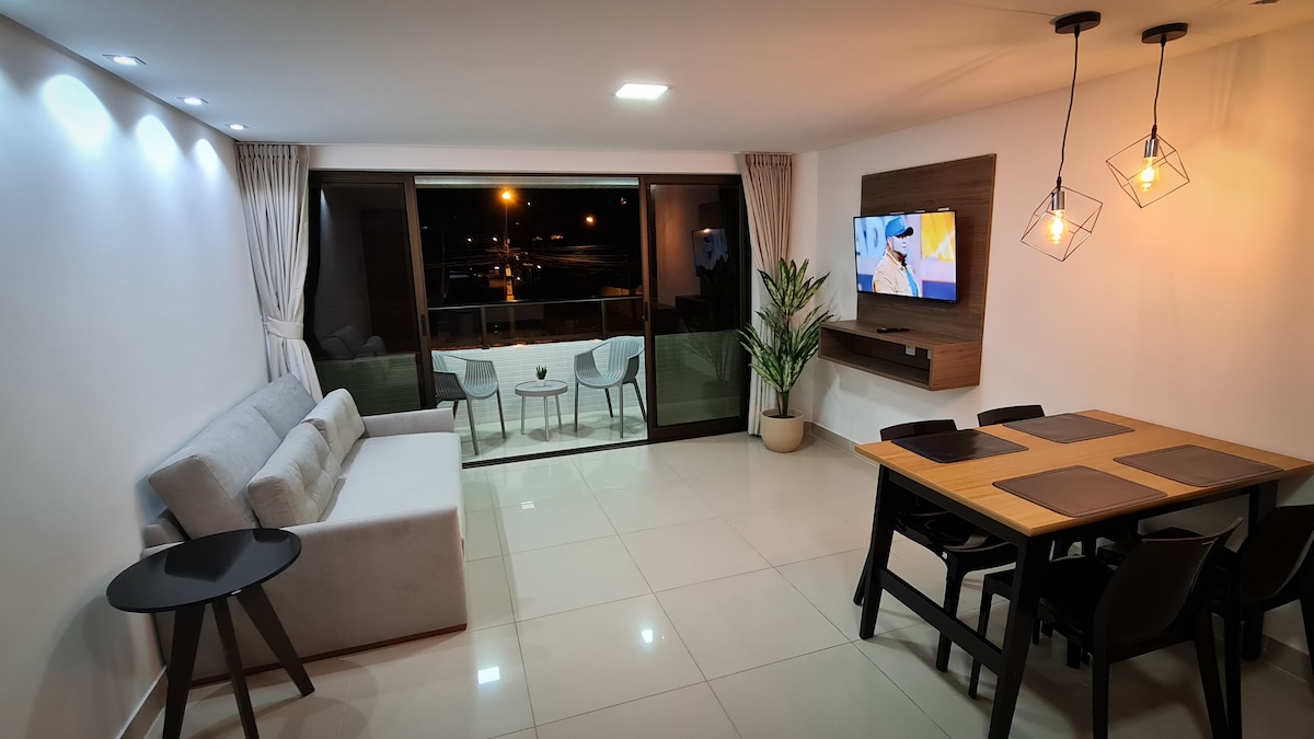 Mėgaukitės nepamirštamomis dienomis jūros balkone! Mūsų svečiai bus patogiai ir moderniai apgyvendinti geriausiame João Pessoa/PB paplūdimyje. Vaikščiodami tik 60 m būsite ant paplūdimio smėlio! Jo jūros balkonas yra netoli Food Truck parko, Barnabé Empadinha, iki kelių nuostabių restoranų, lygiai už 1 km nuo kuskuso baro ir už 1 km nuo Tamandaré krūtinės. Svarbiau, neįmanoma!!!