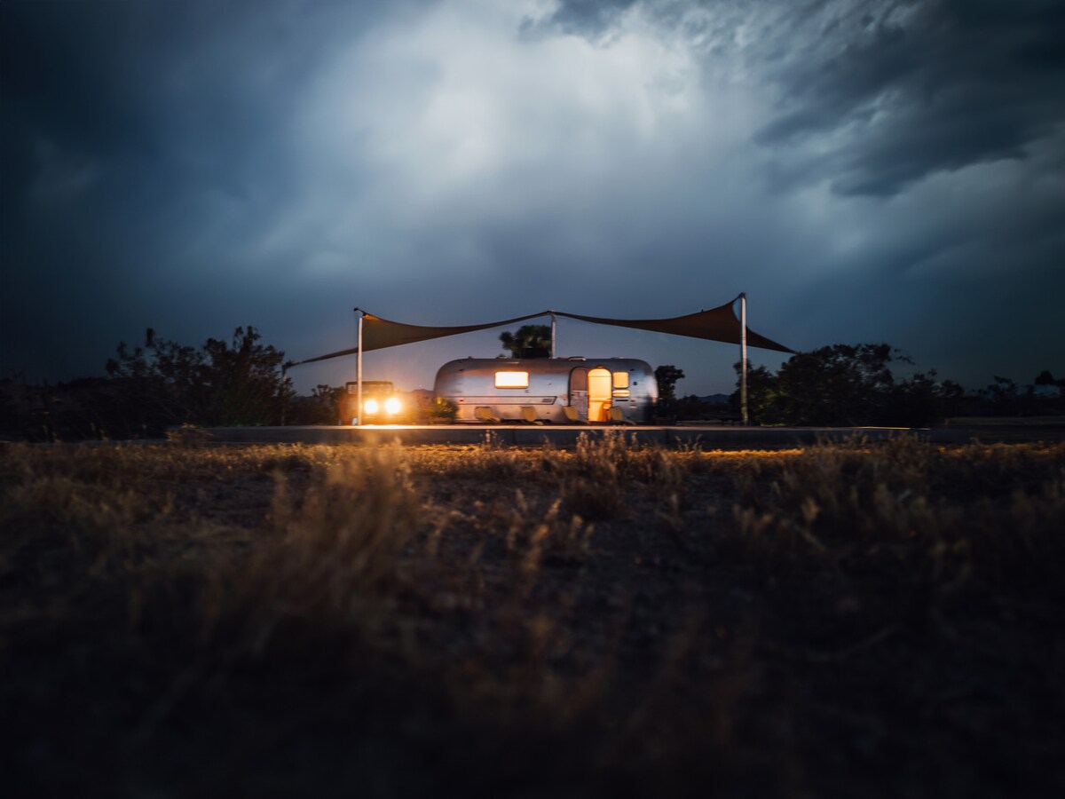 Apsistokite stilingame 2019 m. „Airstream Sport 22“, derinančiame retro žavesį su moderniu komfortu. Puikiai tinka ne daugiau kaip 3 svečiams, jame yra jauki pilno dydžio lova, konvertuojama valgomojo zona ir virtuvėlė su virykle, šaldytuvu ir kriaukle. Mėgaukitės privačiu vonios kambariu, oro kondicionieriumi, šiluma ir elegantišku dizainu su panoraminiais langais. Atsidursite tikrame Kido pasaulyje. Šalia yra sezoninis ŠILDOMAS baseinas, klubas ir laužavietė. Vos už kelių minučių nuo Senamiesčio Jukos slėnyje, Pioneertown ir Joshua Tree nacionalinio parko. Jūsų laukia tobula prabangi stovyklavietė
