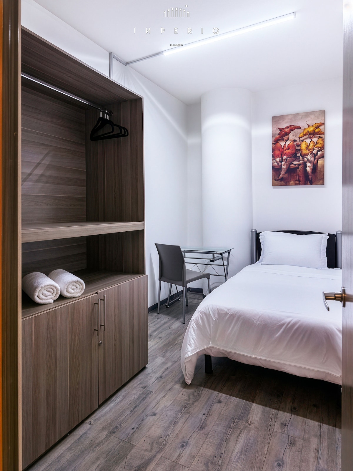 Ši stilinga erdvė puikiai tinka jūsų viešnagei. Privačiuose apartamentuose yra visa įranga: virtuvė, indai, šaldytuvas, orkaitė ir kavos aparatas. Miegamasis su privačia terasa ir karališko dydžio lova. Erdvus modernus vonios kambarys su viskuo, ko reikia, kad jūsų viešnagė būtų maloni. Bendros erdvės su „Roof Top on the Sky“ linija leis pasijusti geriausioje miesto vietovėje. Visą parą dirbantis apsaugos darbuotojas ir skalbykla.