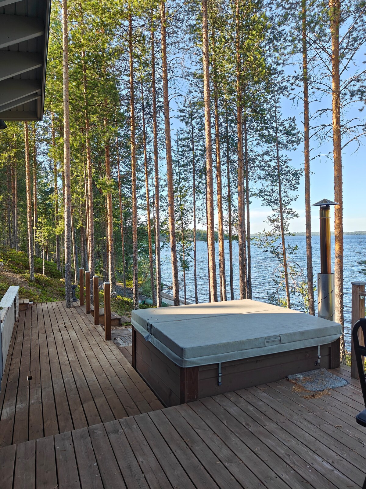 Rąstinė trobelė su vaizdu į ežerą. Yra privati pirtis, vienas miegamasis ir miegamasis, esantis už pagrindinės trobelės ribų. Svetainė ir virtuvė yra sujungtos. Kepsnių vieta yra priekiniame kieme. Tualetas yra sausas/lauko tualetas, kuriame nėra vandens tualeto. Iš ežero filtruotas dušas ir vandentiekio vanduo. Gėlo vandens filtras. Galima nemokamai naudotis valtimi. Veikla: laukinė svetainė. Sūkurinė vonia / papildomas mokestis 90 €.