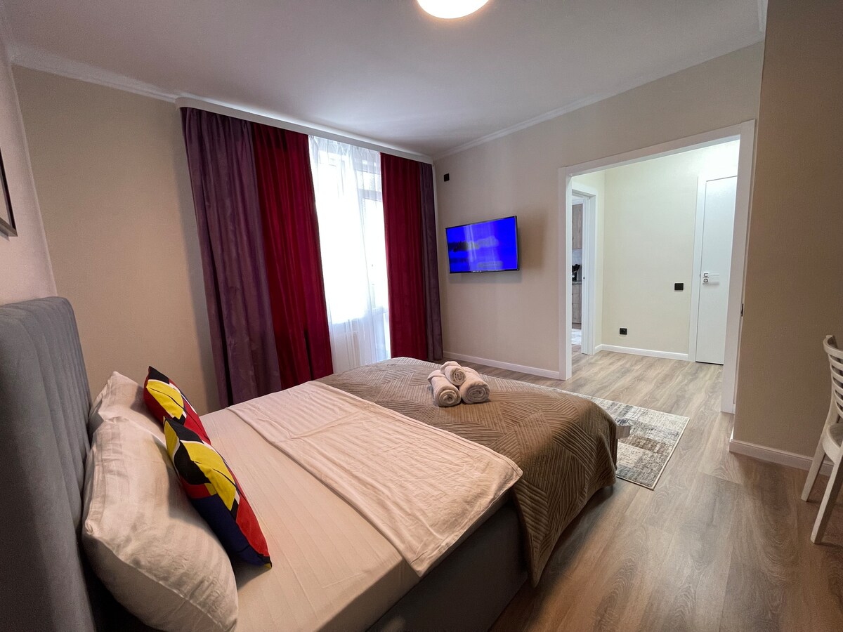 Visiškai naujas butas netoli sporto kompleksų Barys Arena, Astana Arena, Kazakhstan, Velotrek Sary Arka. Netoliese taip pat yra botanikos sodas, prekybos centras, restoranas ir kūno rengybos centras, prekybos centras. Mėgaukitės stilingu potyriu pačioje miesto širdyje. Esu tikras, kad jums patiks apsistoti pas mus, nes mūsų svečiai palieka puikių atsiliepimų. Džiaugiamės galėdami priimti svečius ir visada to laukiame.
