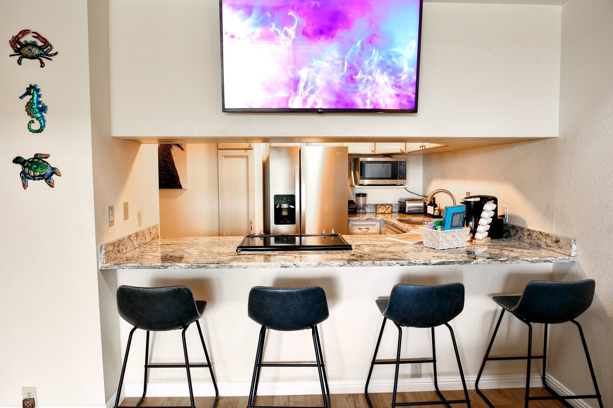 Puikus kondominiumas pačiame mieste. Eikite į paplūdimį, parduotuves ir restoranus. Naujai rekonstruotas kondominiumas su visa virtuve ir skalbykle bei džiovykle. Greitas Wi-Fi, oro kondicionierius ir paplūdimio įranga, kuria galite naudotis. Jums nereikia nuomojamo automobilio, taip pat galite mėgautis baseinu, sūkurine vonia ir kepsnių zona. Įskaičiuota nemokama automobilių stovėjimo aikštelė. Alii automobiliu galite nueiti pėsčiomis iki daugumos restoranų ir parduotuvių nemokėdami automobilio statymo mokesčių.