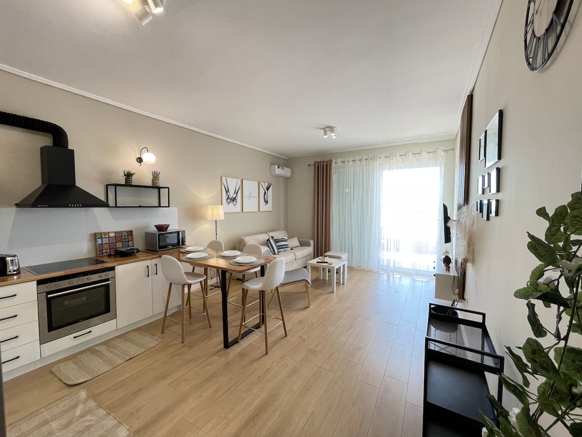 Sveiki atvykę į Poseidono ešerius gražioje Sarandėje! Patirkite naujai renovuotą butą su plačiais vaizdais į jūrą. Šis 1 lovos, 1 vonios butas patalpoje/lauke perkelia į visiškai naują lygį su plačia stumdomąja stikline siena. Plati lauko valgomojo ir poilsio erdvė užtikrins, kad turėsite priekinę sėdynę įspūdingiems saulėlydžiams. Įsikūręs idealioje Sarandë vietovėje su paplūdimiais, restoranais, turgais ir paplūdimio klubais pėsčiomis. Susikraukite maudymosi kostiumėlius ir greitai pasimatysime!