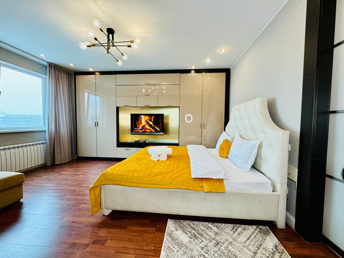 Sveiki atvykę į idealią viešnagę Almatoje! Mėgaukitės kvapą gniaužiančiais kalnų ir miesto vaizdais tiesiai pro langą. -7 minutės iki metro stoties - patogi lova ir jauki sofa - pilnai įrengta virtuvė - modernus vonios kambarys su švariais rankšluosčiais ir tualeto reikmenimis - Wi-Fi ir SmartTV Butas yra saugiame ir gyvybingame rajone, netoli kavinių, prekybos centrų, vaistinių, prekybos centrų! Galimas savarankiškas atvykimas Visada pasiruošę jums padėti — nedvejodami rašykite bet kuriuo metu. Atsipalaiduokite, tyrinėkite, jauskitės kaip namie!