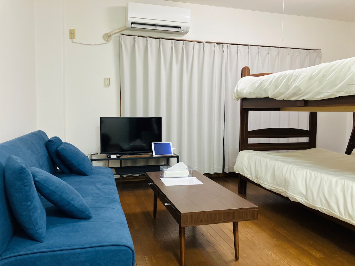 名古屋駅から直通電車で4分! 地下鉄本陣駅から徒歩1分【301号室】広いお部屋に4ベッド6人宿泊可能