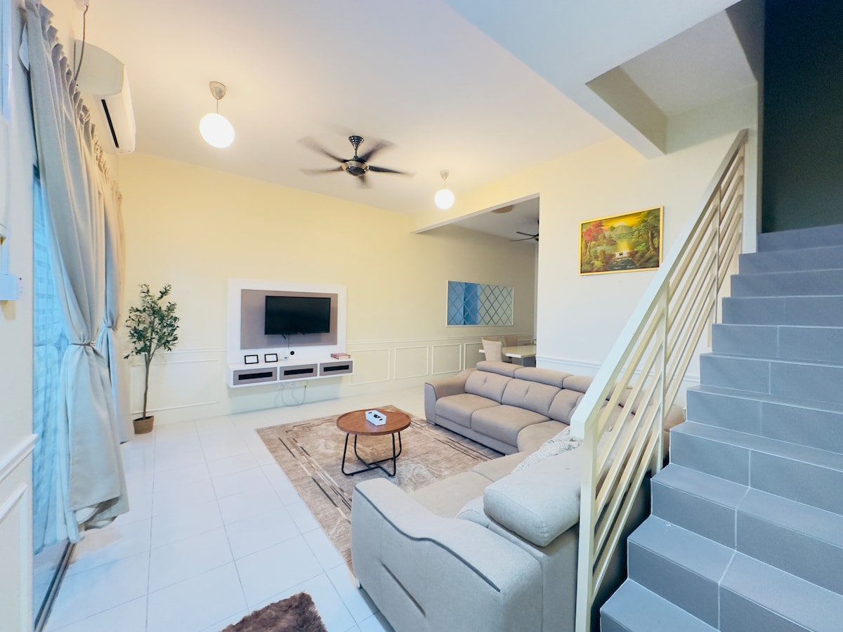 Atsipalaiduokite su šeima šiuose keturiuose miegamuosiuose su oro kondicionieriumi ir svetaine! Turime penkis veikiančius oro kondicionierius, kad jūsų viešnagė būtų kuo jaukesnė! Mūsų namas yra tiesiai priešais žaidimų aikštelę, kurioje jūsų vaikai gali saugiai žaisti, ir vos už kelių minučių kelio pėsčiomis iki Longwan prekybos centro! Be to, netoliese yra UTP, kur galite mėgautis gražiu pasivaikščiojimu prie ežero ir per kelias minutes pasiekti kitus lankytinus objektus Seri Iskandare! Apsistokite pas mus!