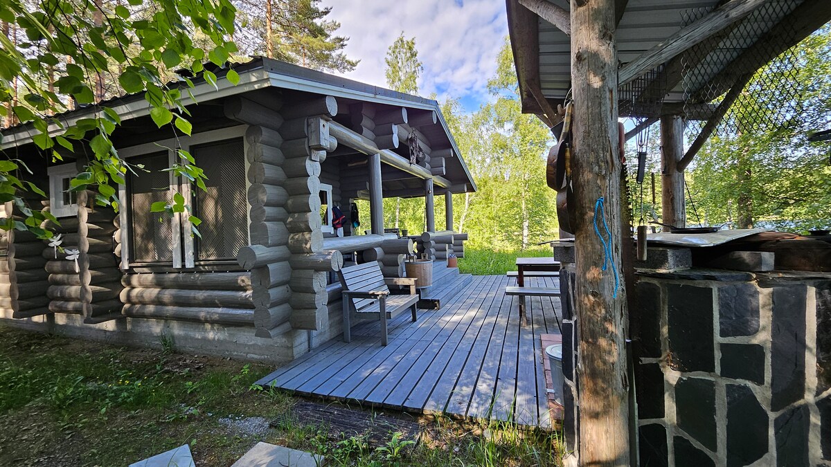 Nauja, gerai įrengta rąstinė trobelė, pastatyta 2018 m., iš jos lengvai pasieksite pagrindinius kelius ir netoliese esančius miestus. Trobelė yra ant kalvos su puikiu vaizdu į didelį ežerą. Namelis yra apsuptas didelių uogų miškų, pėsčiųjų takų ir ežero, kuriame gausu žuvų. Trobelėje yra malkomis kūrenama pirtis, židinys, kepsninė, sūkurinė vonia ir valtis. Žiemą galite slidinėti, čiuožinėti, slidinėti snieglente, žvejoti ant ledo ir žygiuoti sniegbačiais. Artimiausias slidinėjimo centras yra Sappee (30 km).