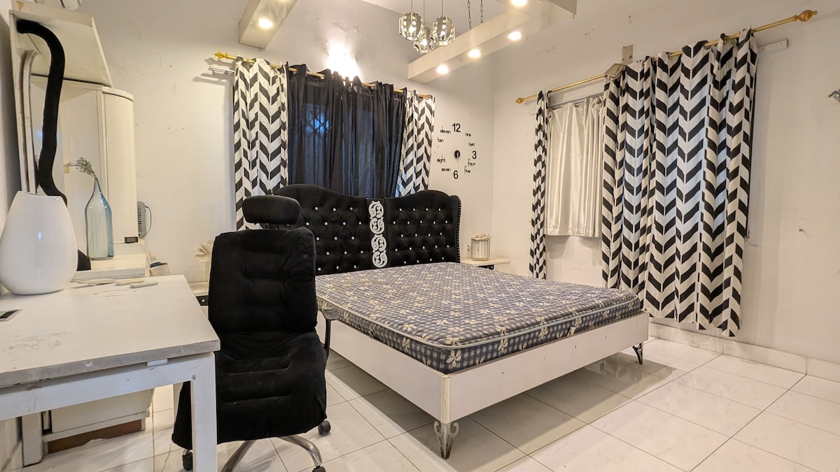 Sveiki atvykę į savo namus toli nuo namų!🏡✨ Atraskite 750 kv. m grynos prabangos šiame moderniame DHA vienaaukščiame vasarnamyje, puikiai tinkančiame šeimoms, vestuvių svečiams, verslo kelionėms ir grupinėms viešnagėms. Mėgaukitės 5 erdviais miegamaisiais, 6 jaukiomis lovomis, 5,5 švariais vonios kambariais, taip pat prabangiu svetaine, stilingu poilsio sale ir pilnai įrengta virtuve🍳. Su 7 oro kondicionieriais, stipriu belaidžiu internetu ir visą parą veikiančiu karštu vandeniu/dujomis komfortas garantuojamas visos viešnagės metu. 🌿 Atsipalaiduokite naudodami nepertraukiamą elektros energiją naudodami atsarginį generatorių, sodą ir stogą.