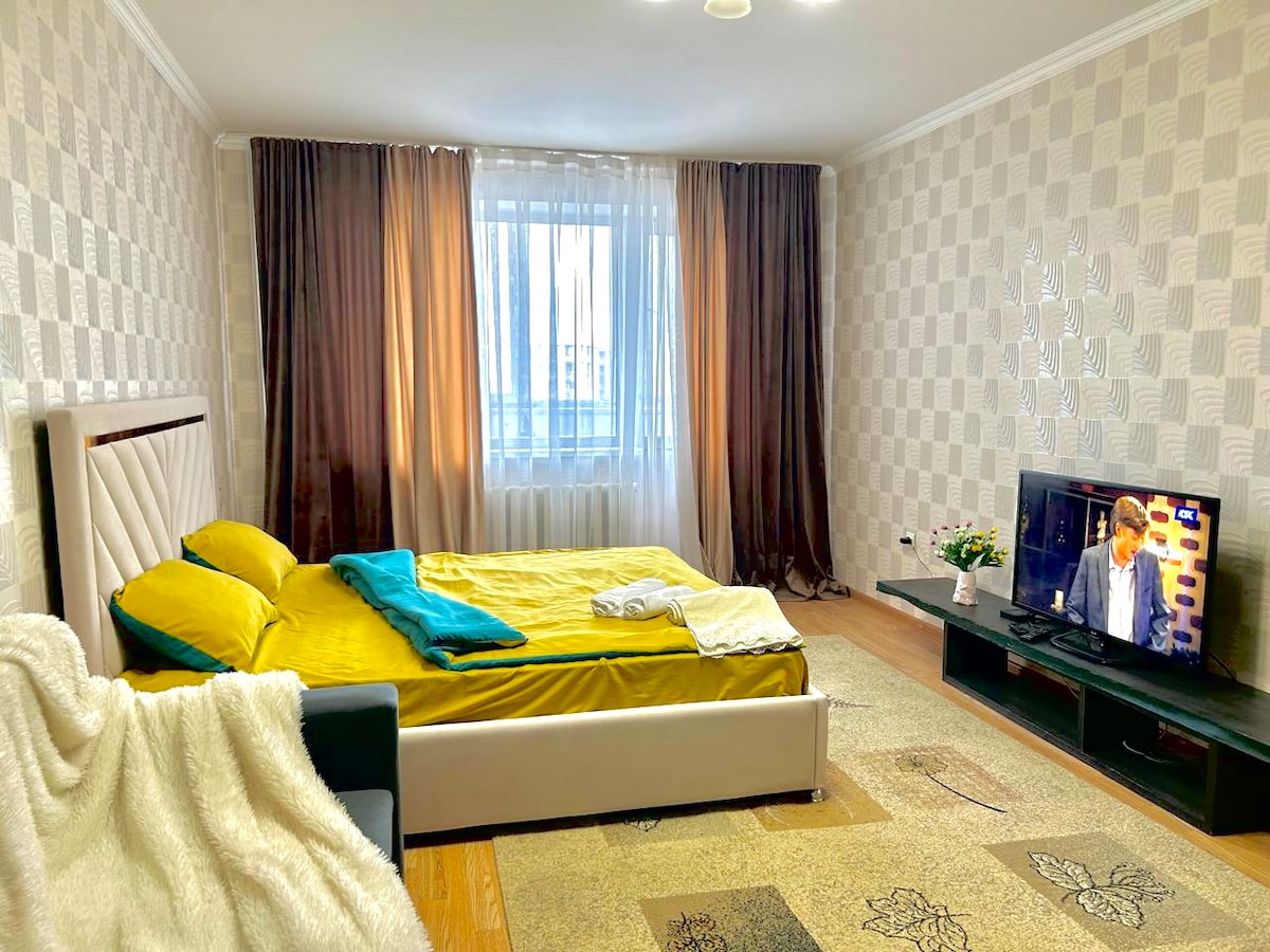 Modernus, švarus ir naujas butas su viskuo, kas reikalinga jūsų patogumui. Bute yra visi reikalingi prietaisai, indai, švari patalynė ir rankšluosčiai. Puikiai tinka verslo kelionėms, poroms ir šeimos atostogoms. Infrastruktūros plėtra Khanshatyr prekybos centras, - Respublikonų diagnostikos centras Motinystės ir vaikystės centras Širdies chirurgijos centras Neurochirurgijos centras Vanduo ir žalias bulvaras Barys Arena, Astana Arena, Alau, - Green Mall, Žaliasis kvartalas