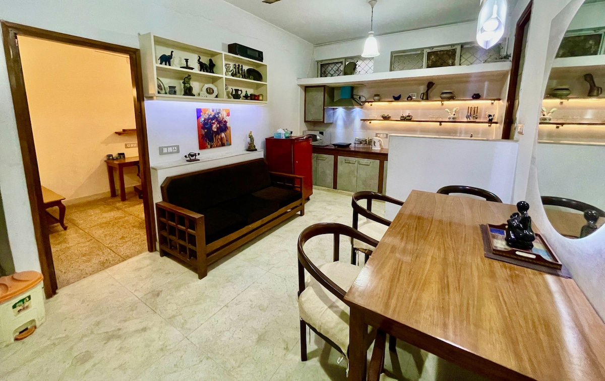 Įsikūręs pačioje Pietų Delio širdyje @GK 1, sveiki atvykę į mūsų kuklius namus. Ši nedidelė erdvė, sukurta studijos formatu tiems, kuriems patinka erdvė ir privatumas, yra viskas, ko reikia trumpalaikėms ir ilgalaikėms viešnagėms. Jame yra nedidelė, bet gerai įrengta virtuvė ir vonios kambarys. Su visiškai nauju „Panasonic Split Ac“, įrengtu 2025 m. Svarbiausias dalykas, į kurį reikia atkreipti dėmesį, yra įėjimas, esantis spiraliniais laiptais iš galinės mūsų namo pusės, kuris yra labai centre, netoliese yra bėgimo parkas ir šunų parkas