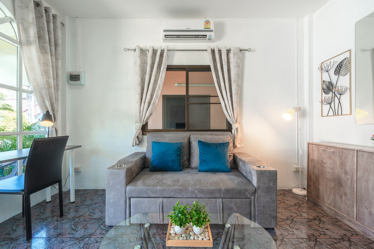 Sveiki atvykę į Utopia Karon (Deluxe Sea View Condominium) ---------- Visiškai naują 2024 m. pastatytą kondominiumą, esantį Karone, populiarioje Puketo turistinėje zonoje, 35 kvadratinėje erdvėje — balkonas su vaizdu į jūrą ir įtraukianti vonia. Būsto akcentai: 7 min. pėsčiomis iki Karono paplūdimio!Apsupti restoranų, būtiniausių prekių parduotuvių ir naktinių turgų, galite mėgautis tiek ramybe, tiek patogumais. Privatus balkonas su vaizdu į jūrą + romantiškas balkonas su 35 kvadratinėmis erdvėmis, miegamasis su tiesioginiu išėjimu į panoraminį balkoną, vaizdu į jūrą ir vaizdu į kalnus, dienos šviesa į žydrą jūros dangų, mėgaukitės nesugadintu laukinio miško grožiu. Skyline Mountain View Infinity Pool, 360 Immersive Phuket Luxury Escape Living Pilnai įrengta virtuvė + išmanusis namas, pilnai įrengta moderni virtuvė (indukcinė viryklė, mikrobangų krosnelė, šaldytuvas, virtuvės reikmenys), išmanusis televizorius kambaryje, didelės spartos Wi-Fi, oro kondicionierius. Viešbučio bendruomenėje yra visi patogumai: yra du dideli ant stogo esantys baseinai, sporto salė, restoranas, automobilių stovėjimo aikštelė už mokestį, nemokama automobilių stovėjimo aikštelė. Vonios kambarys: atvykus bus parūpintas sausas ir drėgnas atskyrimas, mineralinis vanduo ir vienkartiniai tualeto reikmenys. Atsipalaiduokite atostogaudami, trumpai sustokite, puiki meka darbui nuotoliniu būdu.