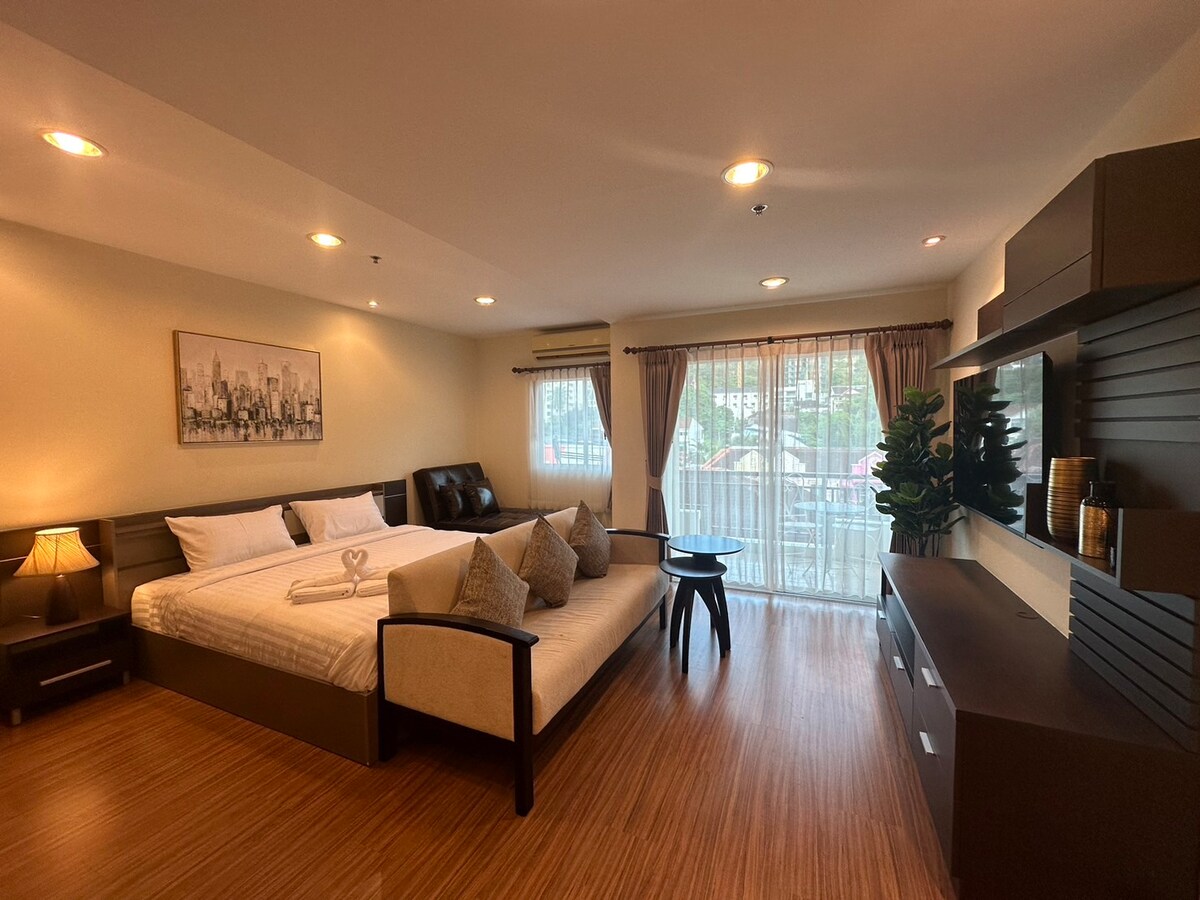 Mano studija yra paplūdimio kurorte , tik 100 metrų nuo legendinio Patong paplūdimio. Nemokami švediško stalo pusryčiai ( amerikietiški, azijietiški, europietiški) įskaičiuoti į kainą, valgykite kuo daugiau. Jūros vaizdas į jūrą, begalinis baseinas . 100 m iki paplūdimio. Mano namai jums patiks dėl vietos, vaizdų ir jaukumo. Stogo baseinas ir baras su vaizdu į saulėlydžio jūrą. Ypatingas ir tikrai unikalus. Lengva nueiti pėsčiomis iki naktinio gyvenimo centro. Labai rami, rami ir saugi vieta. Sporto salė, pirtis. Automobilių stovėjimo aikštelė. Kasdienė namų priežiūra