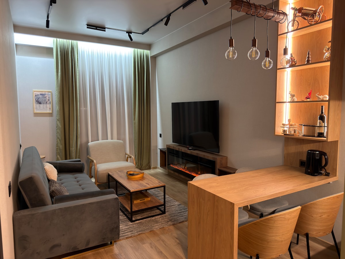 Sveiki atvykę į mūsų šviesų ir jaukų butą pačioje Naujojo Gudaurio širdyje! Vos už kelių žingsnių nuo slidinėjimo kurorto, gondolos ir ledo čiuožyklos. Mūsų stilinguose namuose yra balkonas su nuostabiu vaizdu į kalnus, pilnai įrengta virtuvė, patogus miegamasis, dvi sofos-lovos ir slidinėjimo įrangos laikymo vieta. Patirkite komfortą, stilių ir Gudauri magiją vienoje vietoje!
