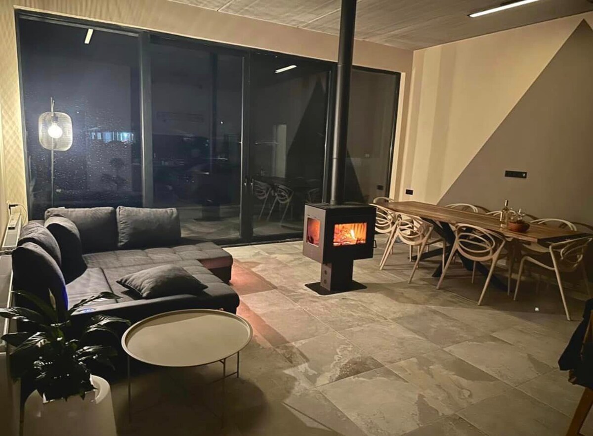Erdvus dviejų aukštų butas su židiniu ir vaizdu į kalnus
