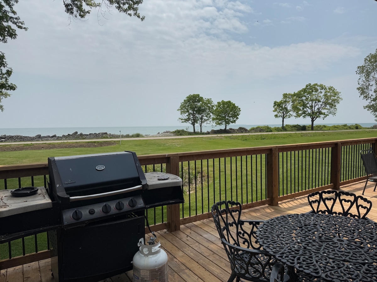 Mėgaukitės Erie ežero gyvenimu mūsų renovuotame kotedže su vaizdu į ežerą iš svetainės ir terasos. Propano kepsninė ir priešgaisrinis stalas! 2 min. pėsčiomis iki rugių paplūdimio ir žaidimų aikštelės - privataus smėlio paplūdimio su prieplauka ir plaukimo zona. 10 min. kelio automobiliu iki Cedar Point, Sporto pajėgų parko, Kalahario. Golfo žoliapjovė ir griaustinio kalvos. Hike-Sheldon Marsh, Old Woman Creek. Atsiprašome, augintinių priimti negalima.