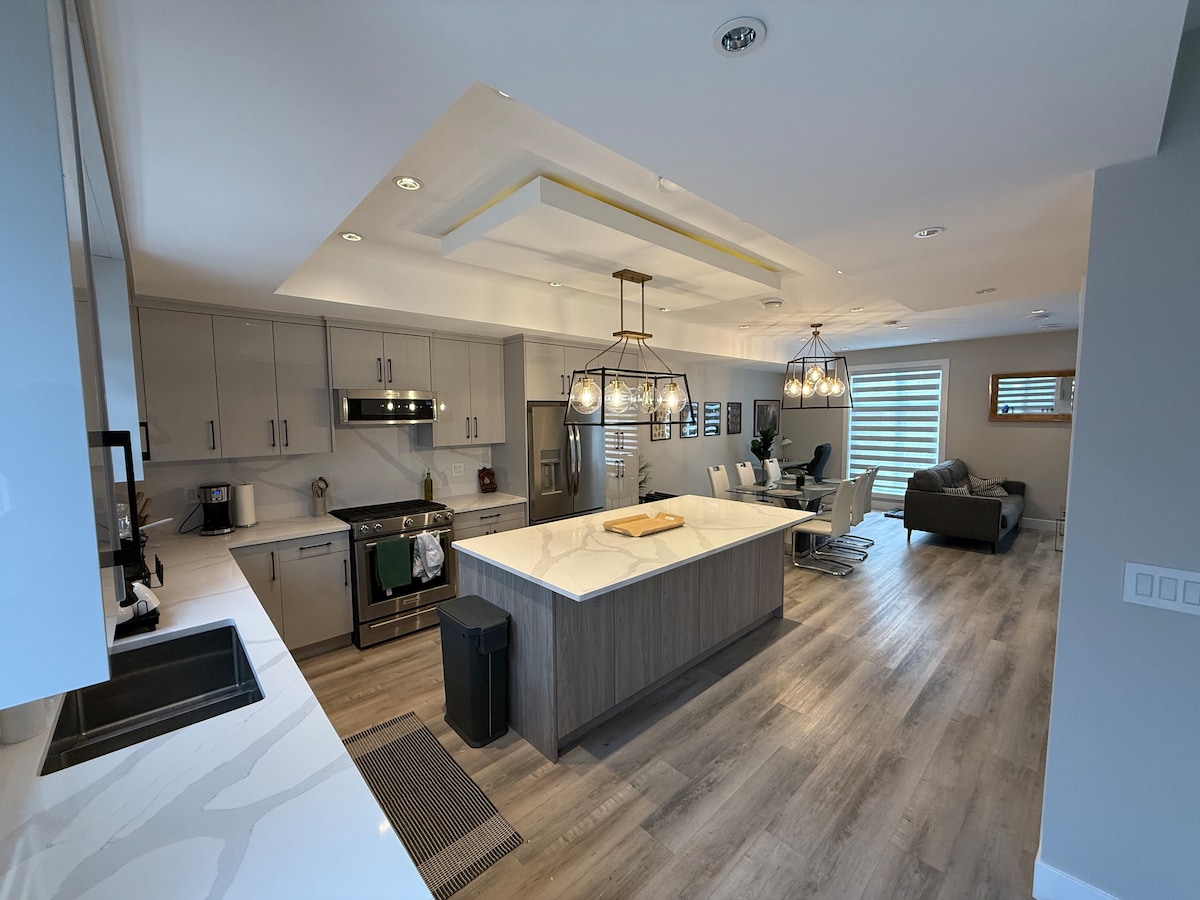 Įsikūręs Kelowna centre ir už 5 kvartalų nuo ežero. Pastatyta 2019 m., joje yra 2 miegamieji ir 2 vonios. Erdvi svetainė su atvira koncepcine virtuve. 10 minučių pėsčiomis iki miesto centro šerdies. Gyvenamoji erdvė yra virš negabaritinio dviviečio garažo. Nuosavybė buvo iš naujo aptverta nauju apželdintu kiemu šuniukams. Saugumas garaže yra puikus šios erdvės privalumas, o miesto centro vieta negali būti įveikta.