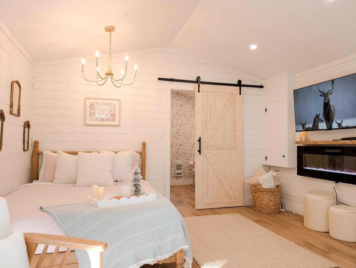 Relax and reset at our cozy riverside retreat! The perfect space to escape and rest. The electric fireplace sets the perfect mood for reading and enjoying complimentary tea or coffee. Soak under the stars in our brand new six person hot tub. Guests can enjoy the large walk-in shower and cozy terry cloth robes. Whether you’re here for a romantic getaway or a quiet retreat for yourself our Candlelight Cottage offers the peace and tranquility to make your stay unforgettable.