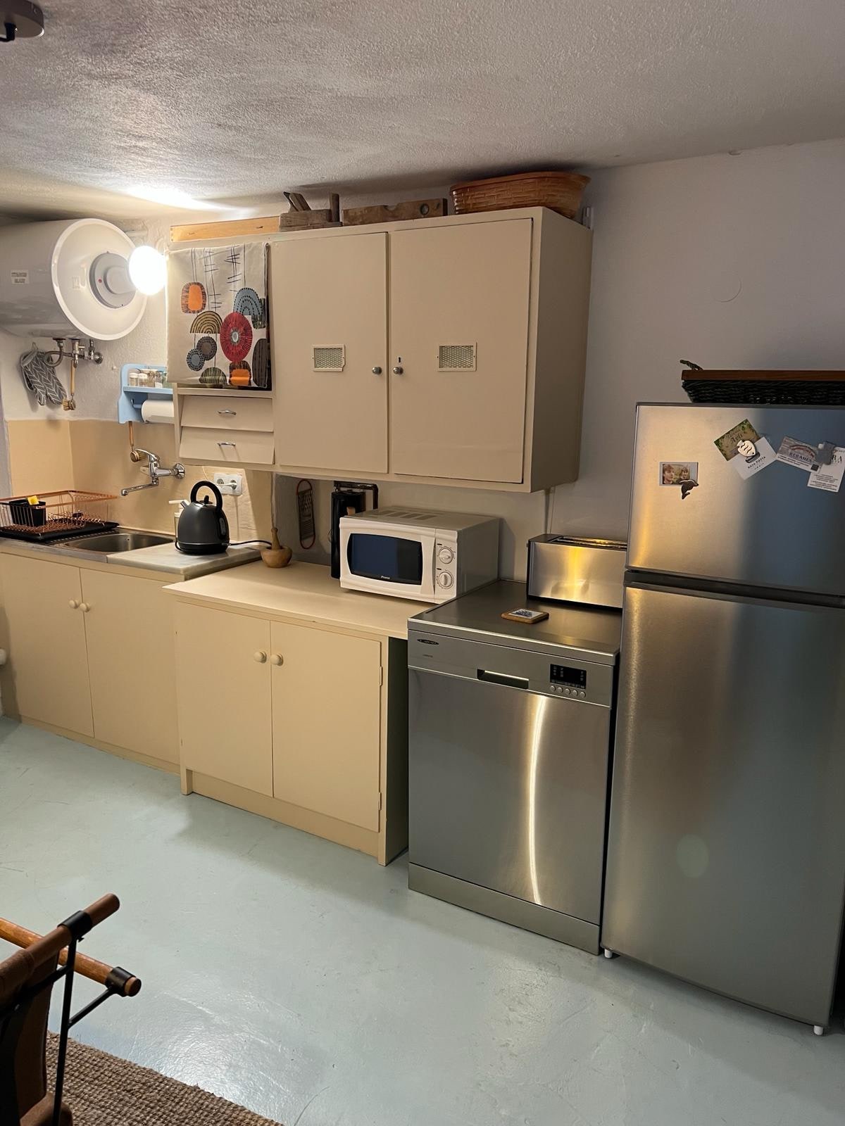 Alyvmedžių apsuptyje ir iš kurio atsiveria kvapą gniaužiantys panoraminiai vaizdai, šis saulės energija maitinamas namas jūsų nenustebins! Virtuvė ir svetainė nėra atskirtos jokia siena ir tai sukuria atvirą ir patogią aplinką. Maistą auginame ekologiškai, turime 8 vištas ir 2 ožkas, kurios kasdien aprūpina mus šviežiu pienu ir kiaušiniais. Todėl negaiškite laiko kurortuose ir nuobodžiuose butuose. Apsistokite mūsų namuose, susipažinkite su žavingomis ožkomis ir patirkite ką nors naujo!