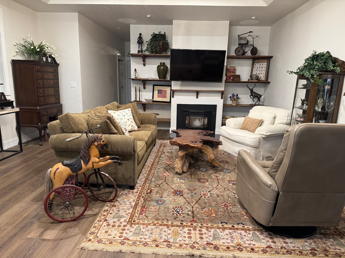 Smagiai praleiskite laiką su visa grupe šiuose neseniai renovuotuose, bet kaimiškuose namuose Heilio papėdėje. Šiuose namuose su 3 miegamaisiais ir 2 voniomis yra didelis aptvertas kiemas, sūkurinė vonia, naujai pertvarkyti vonios kambariai, nauja virtuvė, oro kondicionierius, 2 automobilių garažas. Tai puiki vieta atsipalaiduoti ar sušilti po slidinėjimo, važiavimo dviračiu, žygių, žvejybos ir mėgavimosi Wood River slėniu dienos. Puiki vieta grupėms su šunimis su visiškai aptvertu kiemu, ir yra pėsčiomis iki Toe of the Hill tako. *Pasiteiraukite dėl nuolaidų ilgesnėms viešnagėms!*