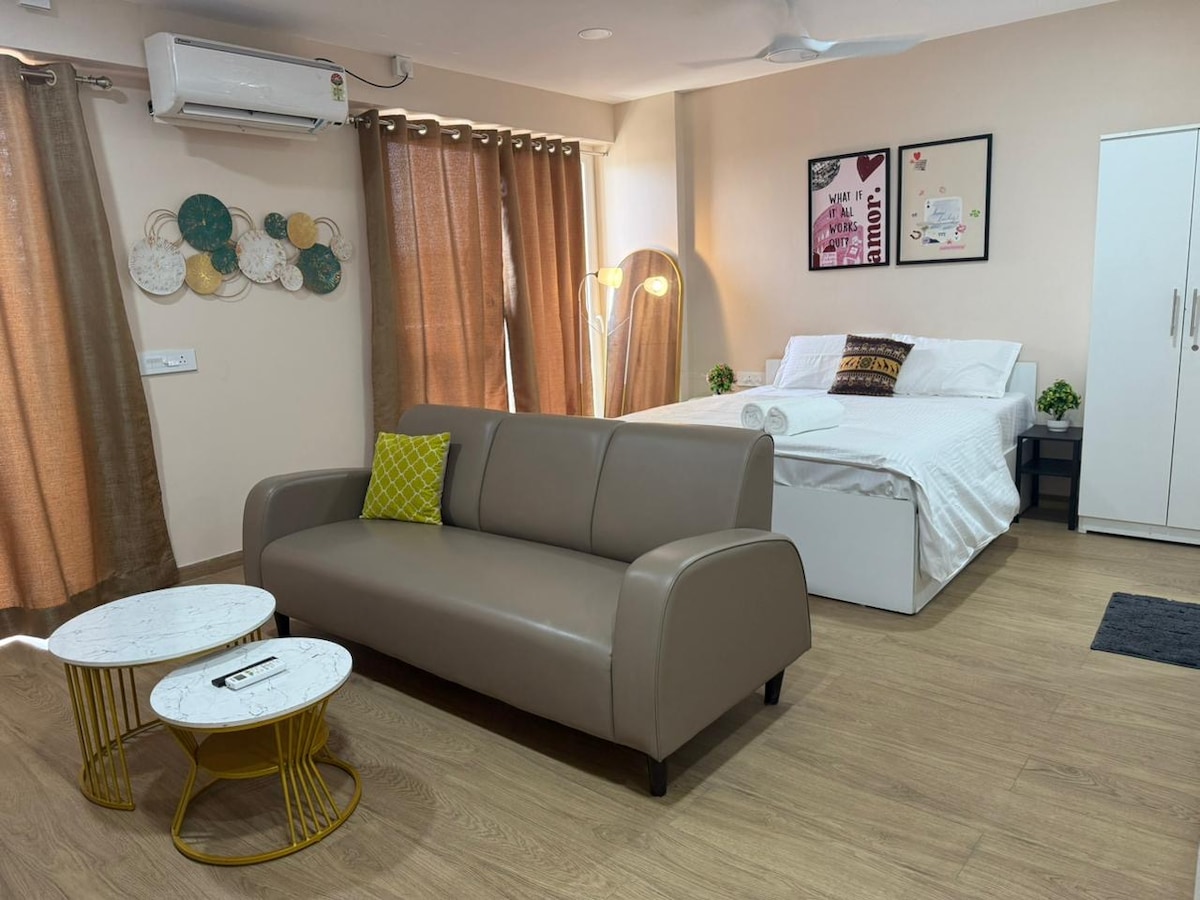Jauki nuostabi moderni studija „Gera's World of Joy“, Kharadi, vos už kelių minučių kelio nuo „Barclays“, „EON IT Park“ ir „WTC“. Idealiai tinka verslo ar laisvalaikio viešnagėms su visą parą veikiančiu saugumu ir greita prieiga prie kavinių, prekybos centrų ir Punos oro uosto. Puikus komforto, stiliaus ir patogumo derinys Pune IT centre. Mėgaukitės jaukia dvigule lova, išmaniuoju televizoriumi, Wi-Fi, oro kondicionieriumi ir kompaktiška virtuvėle su vaizdu į balkoną.
