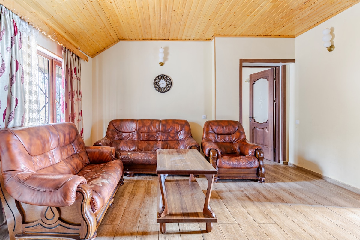 Pabėkite į Vudlandiją – jaukų 2 kambarių kotedžą su privačiu sodu Akhaldaboje, Boržomyje. Mėgaukitės sūkurine vonia, saulės gultais, atpalaiduojančiomis sūpynėmis ir vakarais prie laužo su kepsnine ir khinkali. Atokiau, bet netoli kelio ir restoranų. Visi būtiniausi reikmenys, įskaitant malką ir iešmus. Jūsų šeimininkas visą parą užtikrina patogią ir nepamirštamą viešnagę gamtoje.