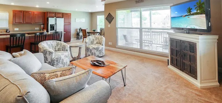Patirkite tobulą poilsį prie upės palei Jordano upę. Šiuose namuose yra patogus apgyvendinimas iki 8 svečių, su prabangia karališko dydžio lova pagrindiniame BR ir 2 viršutiniame aukšte, įskaitant tris lovas. Turėdami 2 vonios kambarius, mėgausitės patogumais ir privatumu. Nesvarbu, ar ilsitės jaukioje svetainėje, ar ruošiate maistą pilnai įrengtoje virtuvėje, ši vieta žada atsipalaiduoti. Vaizdas į upę iš saulės kambario ir vos keli žingsniai nuo jūsų durų pavers jūsų viešnagę nepamirštama.