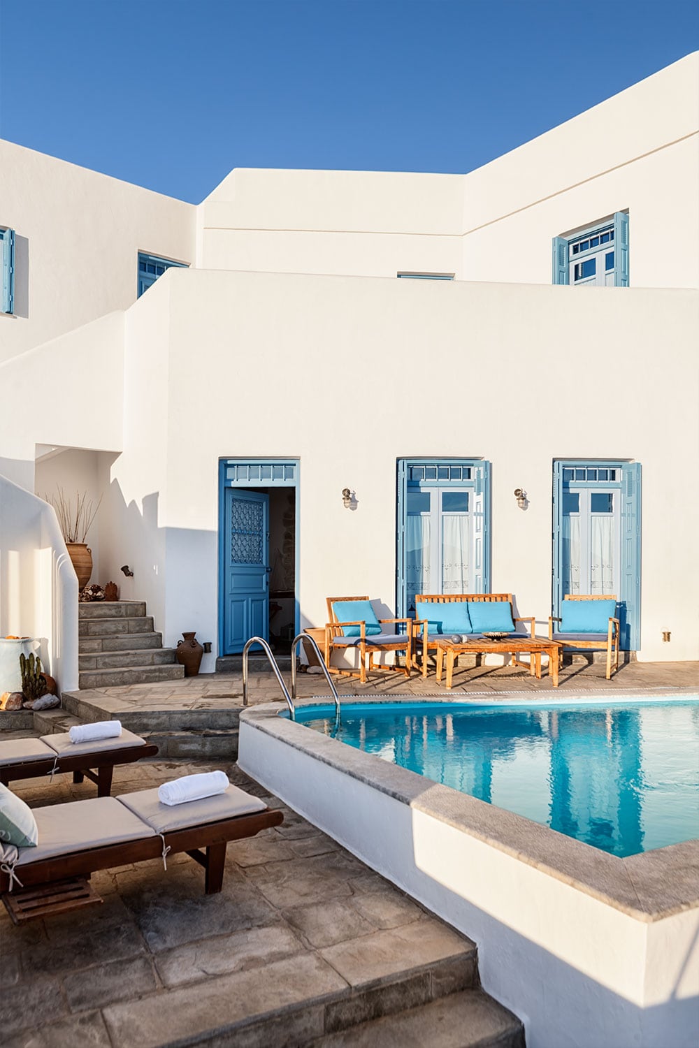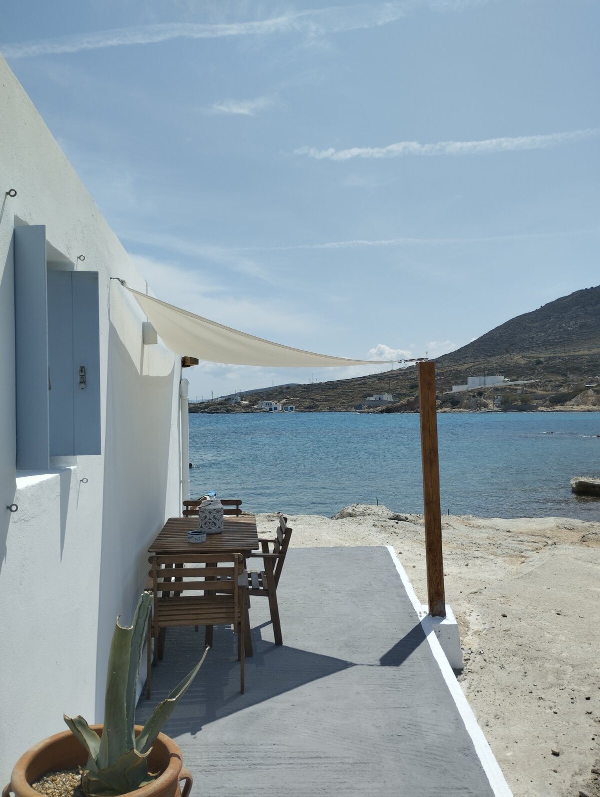 Mūsų tradicinis Kikladų namas yra šimto metų senumo ir anksčiau buvo vasaros poilsis mūsų šeimai.Jis yra pajūryje vaizdingame Mandrakia žvejų kaime šiaurinėje salos pakrantėje. Mūsų namai yra tiesiai ant vandens pakraščio. ir iš jų atsiveria panoraminis vaizdas į jūrą. Nuo mūsų verandos galėsite mėgautis kvapą gniaužiančiais vaizdais į Egėjo jūrą ir turėsite tiesioginę prieigą prie vandens. Išeinate pro priekines duris,eikite laiptais į jūrą, kad galėtumėte nardyti ar plaukioti.