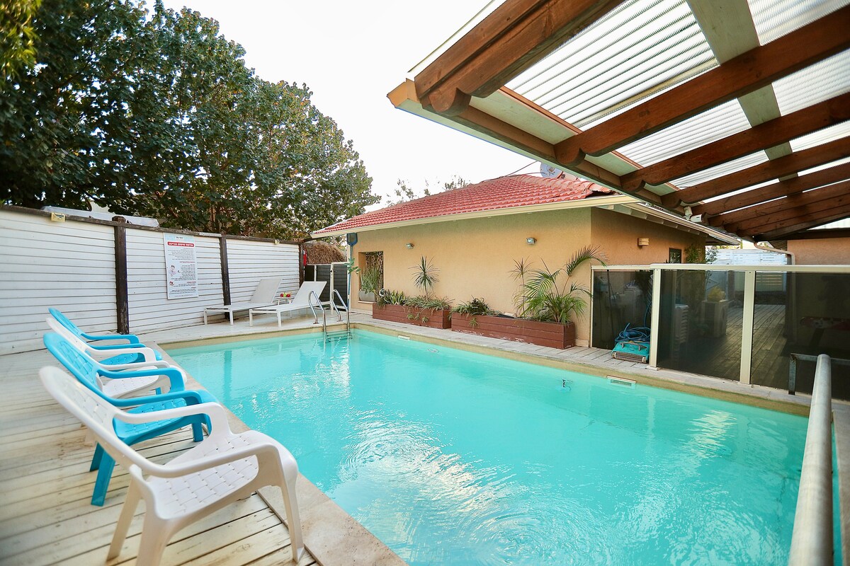 Villa Circle – A Luxury Villa in Nof Kinneret, Upper Galilee 8 beautifully designed bedrooms, a private heated and covered pool with an electric roof and a child-safety cover, a large spa Jacuzzi, wet and dry sauna, and a spacious yard with a barbecue area, pool table, ping-pong, foosball, and a trampoline. Perfect for couples, families, and groups of up to 10 guests – the ideal combination of luxury, privacy, and a breathtaking Galilee view.