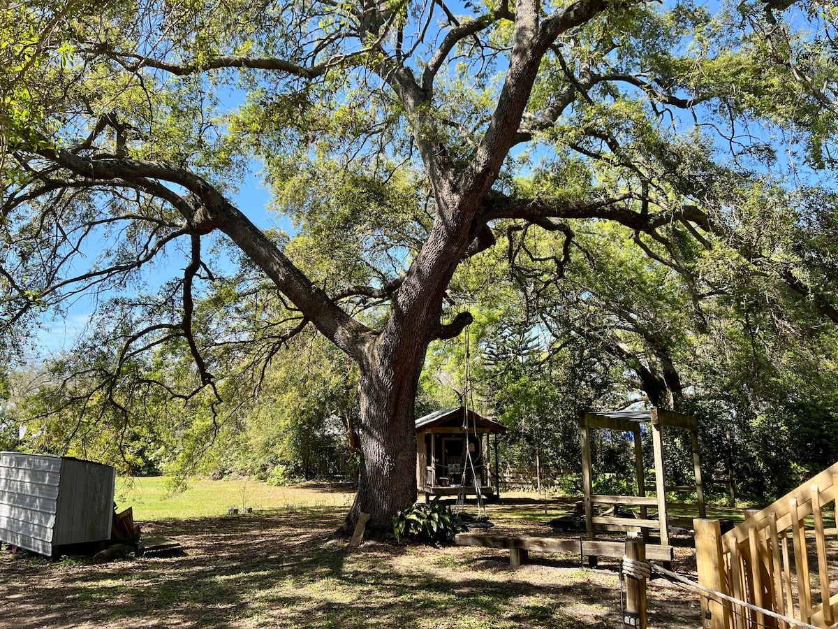 šventykla ir A/C glempingas po 120 metų ąžuolu