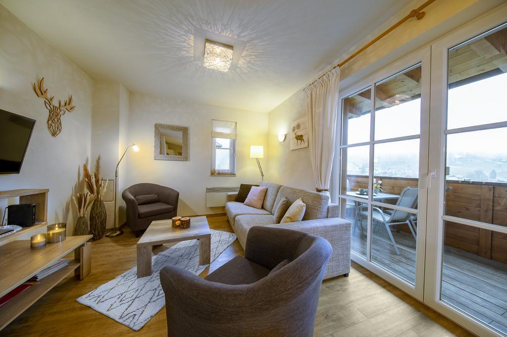 Junior Suite su vaizdu į kalnus rasite daugiau nei 30 m2 butą, kuriame gali apsistoti iki trijų žmonių su dvigule lova ir aukštos kokybės viengule sofa-lova. Bute yra pilnai įrengta virtuvė su jaukia poilsio zona, prabangiu vonios kambariu su negabaritiniu dušu ir skalbykle-džiovykle ir 10 m² terasa su daugybe sėdimų vietų nuoširdiems lauko pusryčiams su nuostabiu vaizdu į Tirolio kalnus.