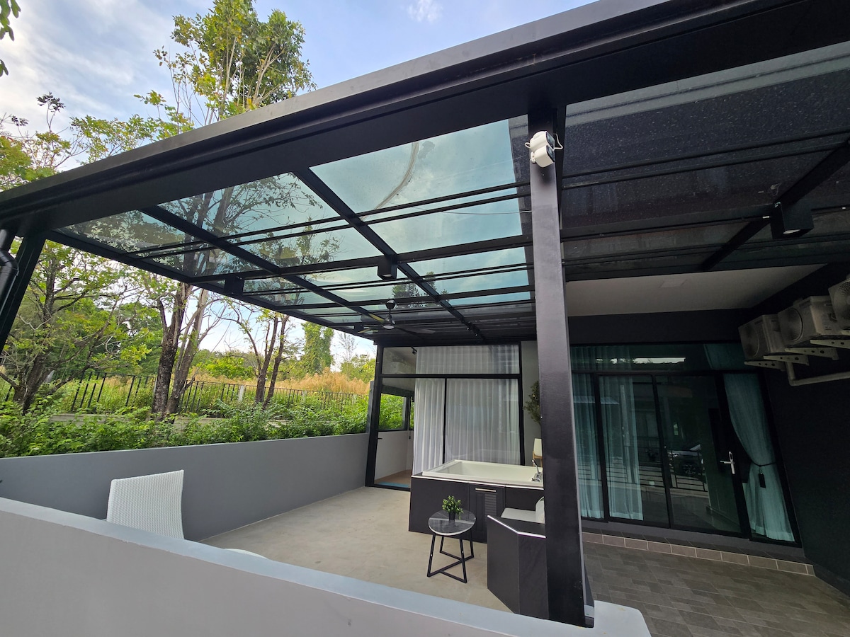 Sveiki atvykę į mūsų rojaus kampelį Pukete! Nekantrauju pasidalyti šiuo išskirtiniu vilos prie baseino kompleksu su jumis. Tai tikrai tylus, erdvus ir atjauninantis pabėgimas su jūsų šeima ir draugais. Yra daug laisvos erdvės pasimėgauti nuostabiu grynu oru ir mėgautis deginimusi. Siūlome nemokamą pervežimą į ramų Mai Khao paplūdimį. Komplekse turime didžiulį bendruomenės baseiną, kuris pasiekia kiekvieną namą. Mėgaukitės visišku nerimu su mūsų visą parą veikiančiu profesionaliu saugumu. 英语,中文,泰语服务.
