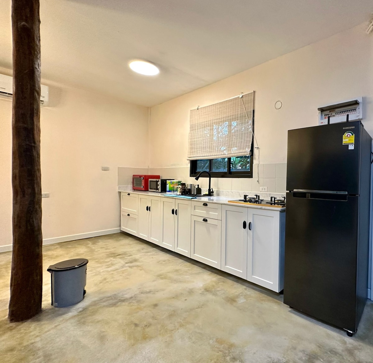 Jauskitės kaip namie savo poilsio vietoje Koh Phangan! - Dydis: 80 m² su žavingu dizainu ir natūralia aplinka - Vieta: vos 5 minutės iki paplūdimio, restoranų ir sporto salės. Patogumai: - Didelė dvigulė lova ir užtamsintos užuolaidos ramiam miegui - Erdvi, pilnai įrengta virtuve. - Didelis balkonas su jaukiu hamaku - Aplinkos apšvietimas atpalaiduojantiems vakarams – „Netflix“ ir spartusis belaidis internetas - Ergonomiška darbo vieta - Atogrąžų dušas - Ekologiški dažai sveikesnei aplinkai Jūsų laukia privatus rojus!