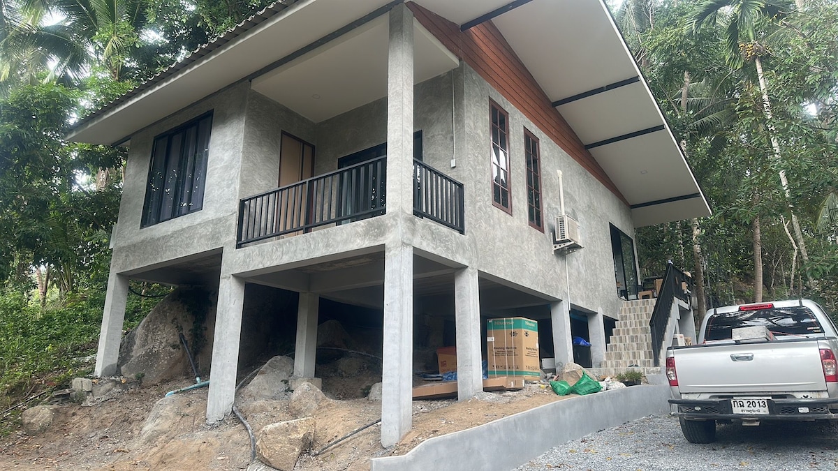 Vila Santorini☀️ Viena geriausių vietų Ko Phangan saloje. Įspūdingas vaizdas. Stilinga, nestandartinė vila. Išskirtinė, rami ir graži vieta. Nuostabus namas, kuriame yra viskas patogiam gyvenimui. Pilnai įrengta. Dvi didelės drabužių spintos zonos, daug skrynių ir stalčių, daug kištukų, didelė virtuvė, yra visi virtuvės reikmenys ir būdai, 2 šaldytuvai, greitas belaidis ryšys, oro kondicionierius, židinys ir kepsninės virtuvė lauke, sporto kampelis, privati teritorija, žalios sienos ir gėlių sodas.