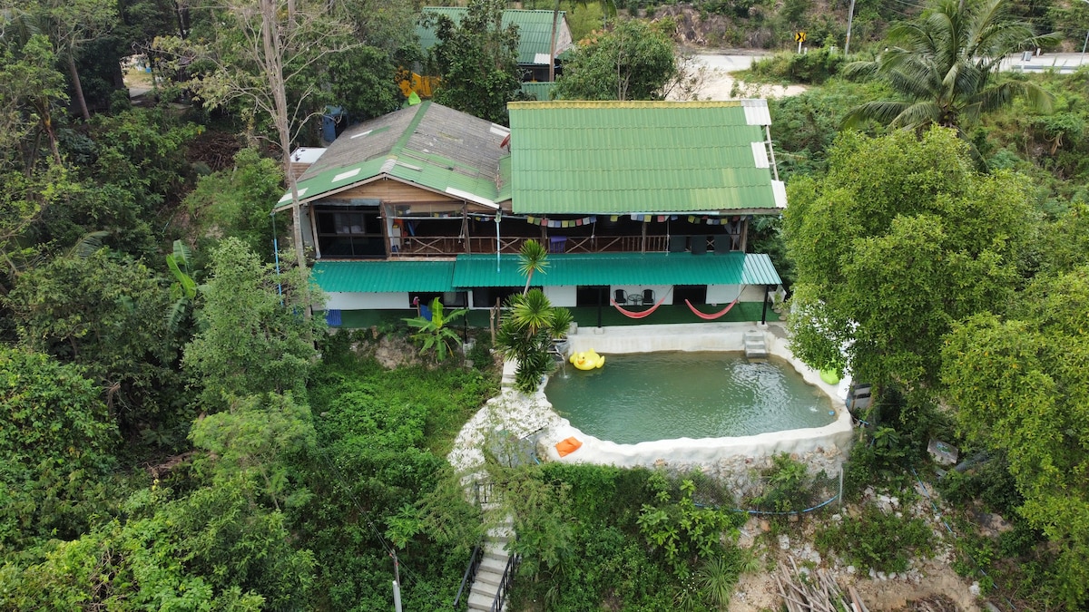Welcome to CocoCool, Your dreamy escape hidden in a coconut oasis. Villa Lomtalay is a stylish, cozy retreat perfect for couples or solo travelers craving calm tropical vibes. Highlights: • Natural chlorine-free pool (Gentle on skin and Eyes) • Sauna • Equipped kitchen • Outdoor jungle-style shower • Only 4 mins from Hin Kong Beach (Motorbike) • Peaceful and quiet neighborhood • Easy on-site motorbike parking