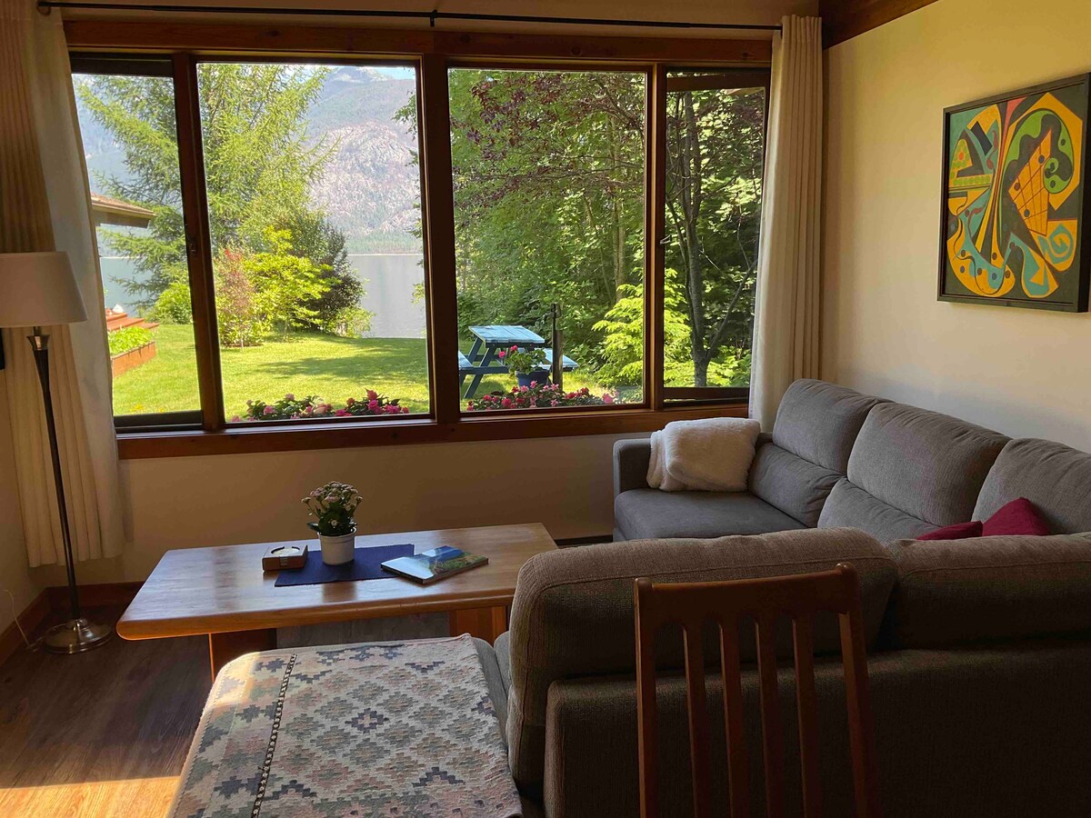 Ši trobelė prie upelio yra privati ir atoki, tačiau netoli visko, ką gali pasiūlyti Nelsonas. 1 min. pėsčiomis iki smėlio paplūdimio; 5 min. kelio automobiliu iki miesto palei vaizdingą Kootenay ežero pakrantę; 25-30 min. iki slidinėjimo kurorto; arba 30 min. iki Ainsworth Hotsprings. Puikiai tinka Kootenay nuotykiams arba nuotoliniu būdu dirbantiems darbuotojams (šviesolaidinis internetas 1000 Mbps). Papildomi 50 $ už naktį trečiajam svečiui. Atsiprašome, augintinių nėra.