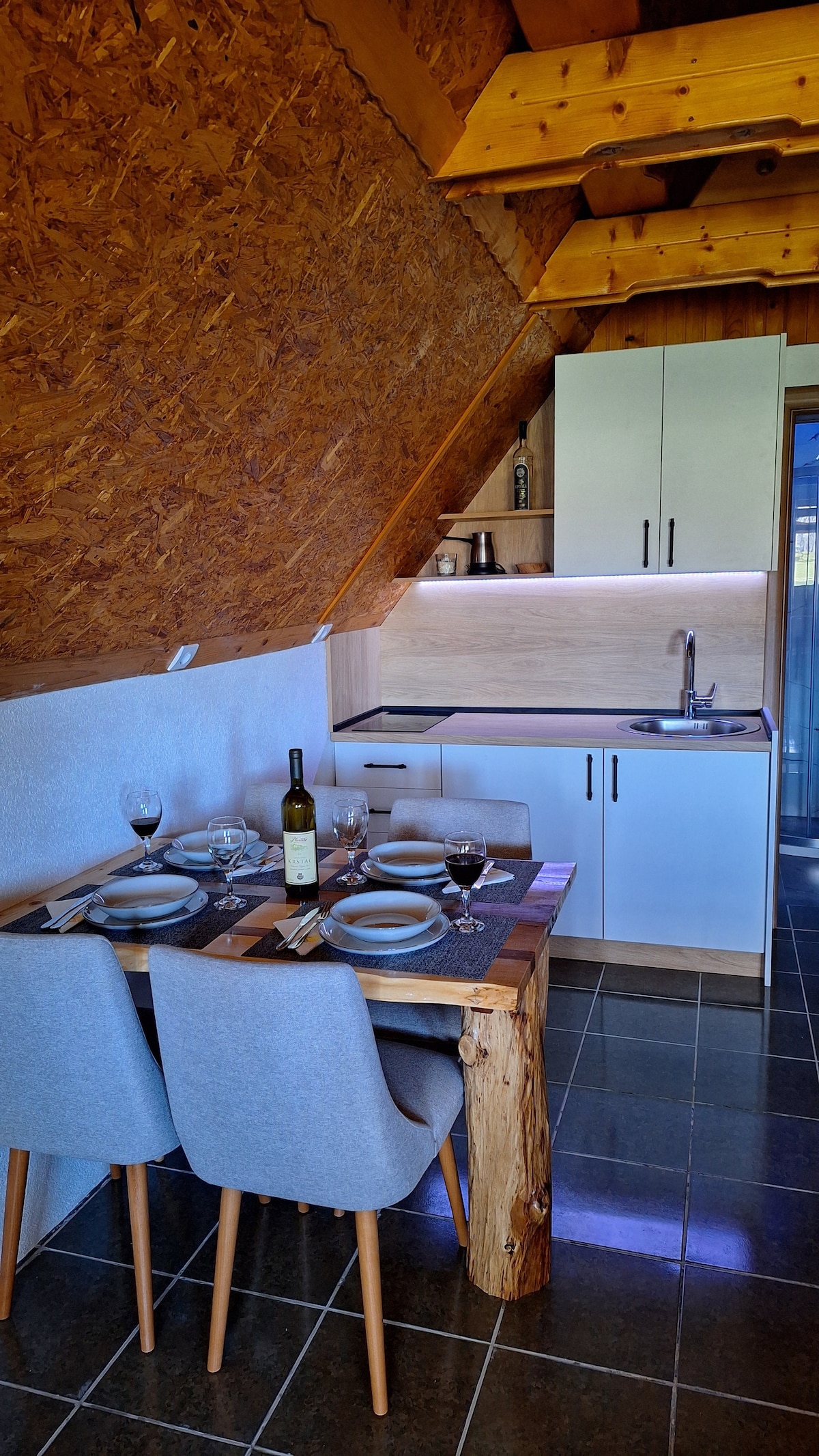 Kotedžas Pošćenje – paslėptas lobis Juodkalnijos laukinėje gamtoje Pabėkite į ramybę ir gamtą mūsų moderniuose kotedžuose, esančiuose ramaus kaimo pakraštyje. Mėgaukitės nuostabiais vaizdais, jaukia miegamąja galerija ir visais šiuolaikiniais patogumais: virtuve, vonios kambariu, Wi-Fi ir oro kondicionieriumi. Vos 30 minučių Durmitor nacionalinis parkas puikiai tinka žygiams pėsčiomis, nuotykiams ar tiesiog atsipalaidavimui. Atsipalaiduokite grynu oru, žvaigždėtomis naktimis ir tikru pabėgimo jausmu.