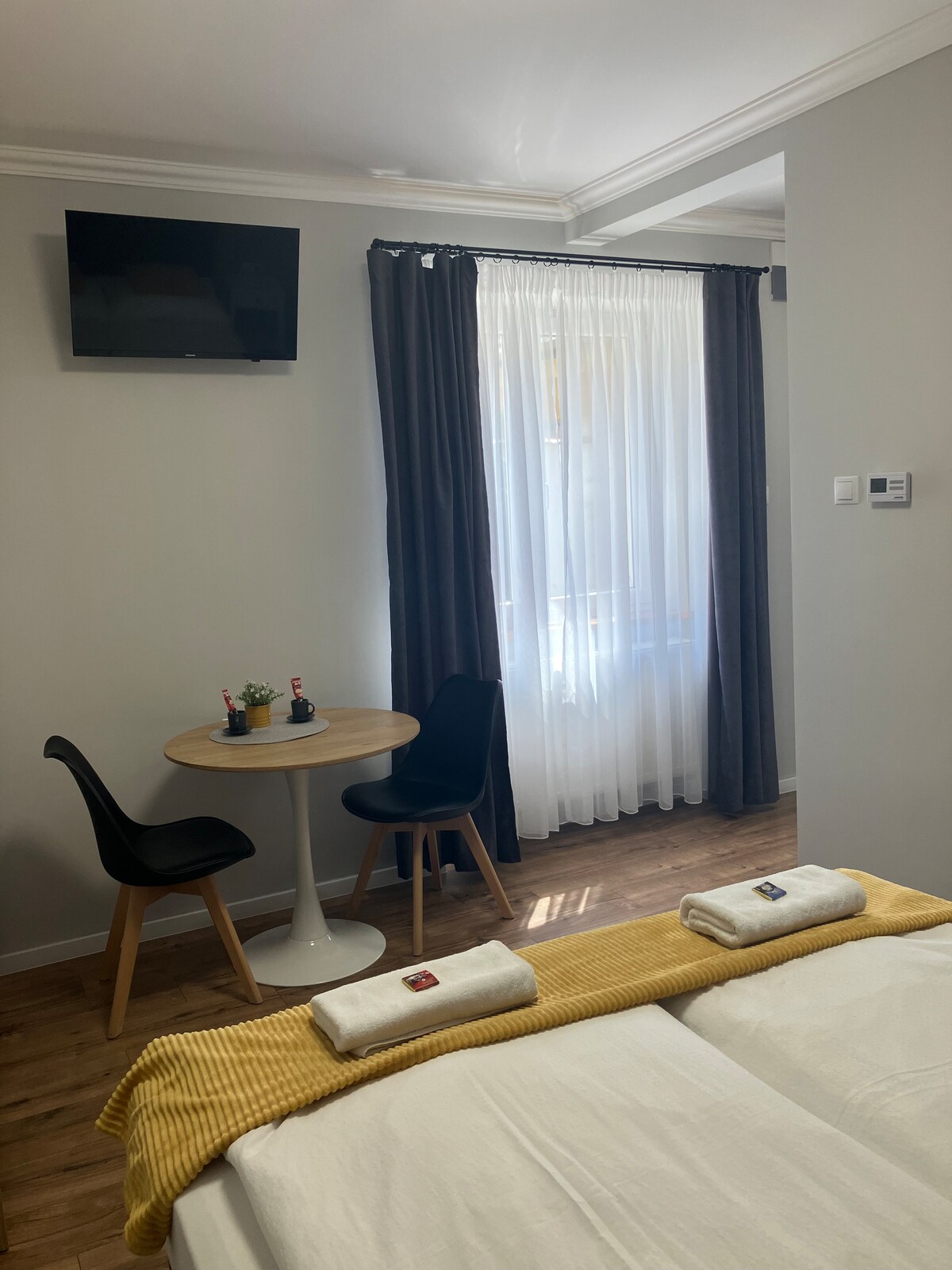 Régi műemlék épületben, nagy belmagasságú polgári lakás, stílusosan berendezve, minden kényelemmel. Belvárosi saját parkolós apartman, közvetlen kapcsolattal a sétáló utcára, 100 m-re a vártól, 200 m-re a strandtól, éttermek, szórakozó helyek, kávézók, bárok között. Ideális családoknak 1 vagy 2 gyermekkel, pároknak. A szállás 4 felnőtt részére nem igazán alkalmas, mivel az egyik ágy csak egy kihúzható kanapé. Az apartman csak teakonyhával rendelkezik, ami főzésre nem alkalmas.