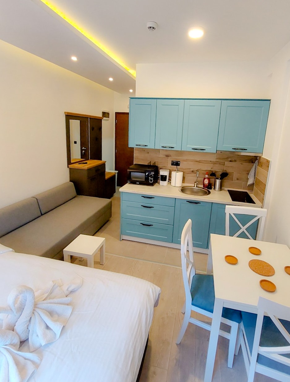 Studio M Blue yra viloje Yeti (buvusi Beobanka), apie 200 m nuo Kopaonik centro, netoli Grand Hotel. Jame gali apsistoti iki dviejų suaugusiųjų ir dviejų vaikų. Jį sudaro svetainė su dviem sofomis-lovomis, kurios tampa dviem prancūziškomis lovomis, kurioje yra virtuvė ir vonios kambarys. Studijoje yra televizorius ir nemokamas Wi-Fi. Svečiams boksas skirtas slidinėjimo įrangai, esančiai pirmame vilos aukšte, laikyti. Iki blynų funikulierių, Cross ir Karaman yra už 200 m.