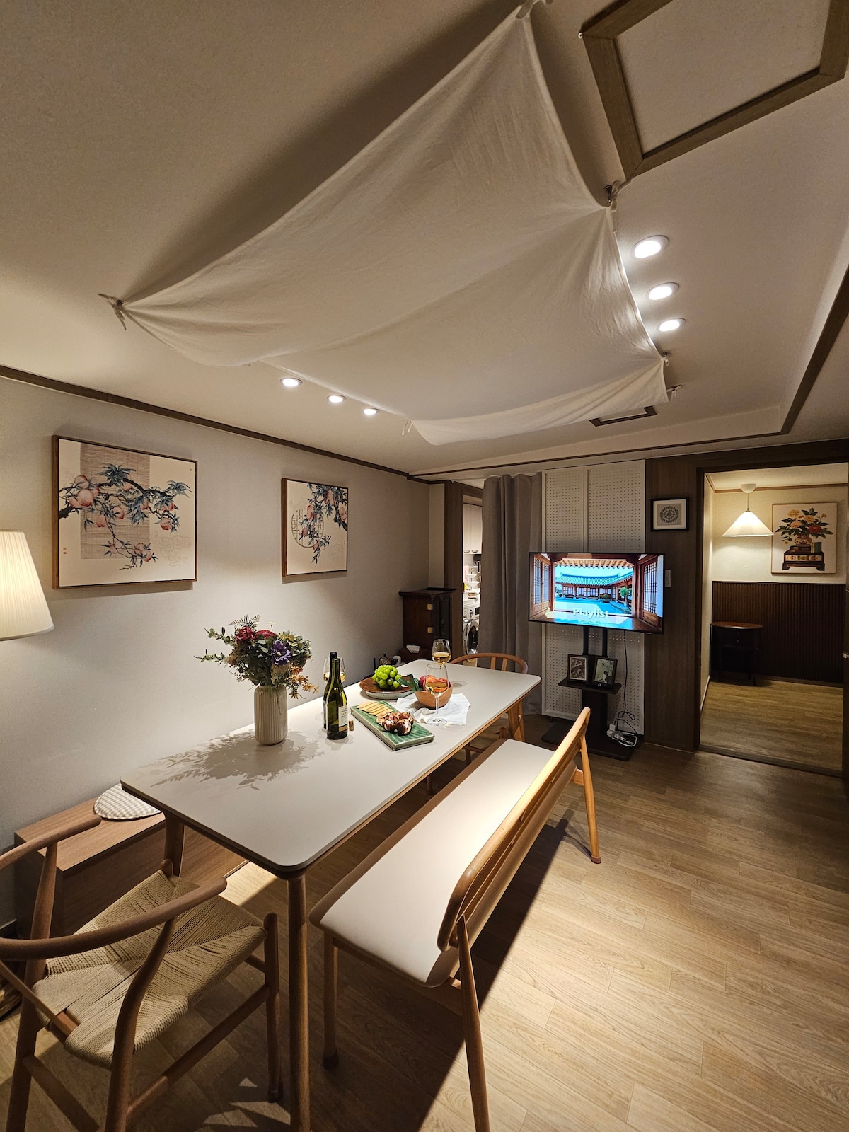 Tarsi pasivaikščiotumėte savo gimtojo miesto draugo taku, tai vieta, kurioje galite ramiai praleisti laiką gulėdami ant sofos svetainėje ir stebėdami ramią tekančią Yeongsan upę. Mes ne tik suteikiame vietą apsistoti, bet ir sunkiai dirbame, kad užtikrintume patogų poilsį ir skanią kelionę už priimtiną kainą kiekvienam svečiui ir vienam iš svečių, kurie lankosi ilgoje vietinių gyventojų patirtyje. Galite žiūrėti Netflix/YouTube Music/Youtube Premium su dideliu 65 colių televizoriumi. Pateikiami įvairūs virtuvės reikmenys/pagardai/indukcinė viryklė/mikrobangų krosnelė/žuvies kepsninė/elektrinė ryžių viryklė ir kt. Tiek Naju stotis, tiek Yeongsanpo terminalas yra per 5 minutes taksi, todėl galite naudotis tyrimu, kuriame galite naudotis nešiojamuoju kompiuteriu ir lyginimu, kad galėtumėte juo naudotis verslo kelionėms. Tačiau norėčiau, kad elgtumėtės su įranga, rekvizitais ir pan., kuriais dalijasi šeimininkas, su idėja, kad jie yra draugų daiktai. Neleidžiami renginiai, rūkymas ir papildomi svečiai, išskyrus užsakytų žmonių skaičių. Jokios raudonos žuvies.