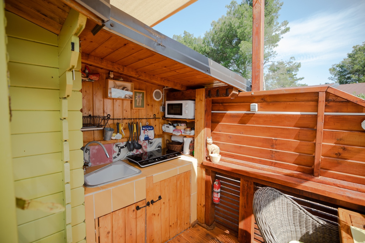 Escape to a cozy private treehouse surrounded by untouched nature, perfect for a peaceful island getaway. Wake up to stunning sea views from your terrace, sip wine under the sun, and enjoy fresh herbs from your garden. Just minutes from the ocean and hidden swimming spots, yet away from the crowds. Private parking is included for a stress-free stay, ideal for couples seeking relaxation, simplicity, and a true Mediterranean escape.