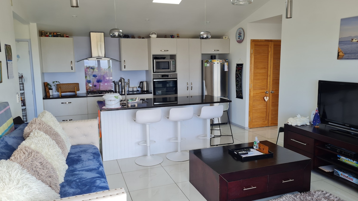 Mangorei Heights - graži moderni trobelė, esanti Pouakai kalnagūbrio papėdėje ir garsiosios Taranaki Tarns žygio. Rami aplinka su išskirtiniais Taranaki kalno vaizdais, taip pat plačiais vaizdais į vandenyną ir Šiaurės salos šiaurinę dalį. Vos už 15 min. kelio nuo Naujojo Plimuto CBD - tai puiki vieta pabėgti nuo gyvenimo chaoso, pakelti kojas ir atsipalaiduoti... Užsakydami taip pat pasiteiraukite apie mūsų masažo ir maisto padavimo paslaugas! Paverskite tai puikia atpalaiduojančia viešnage.