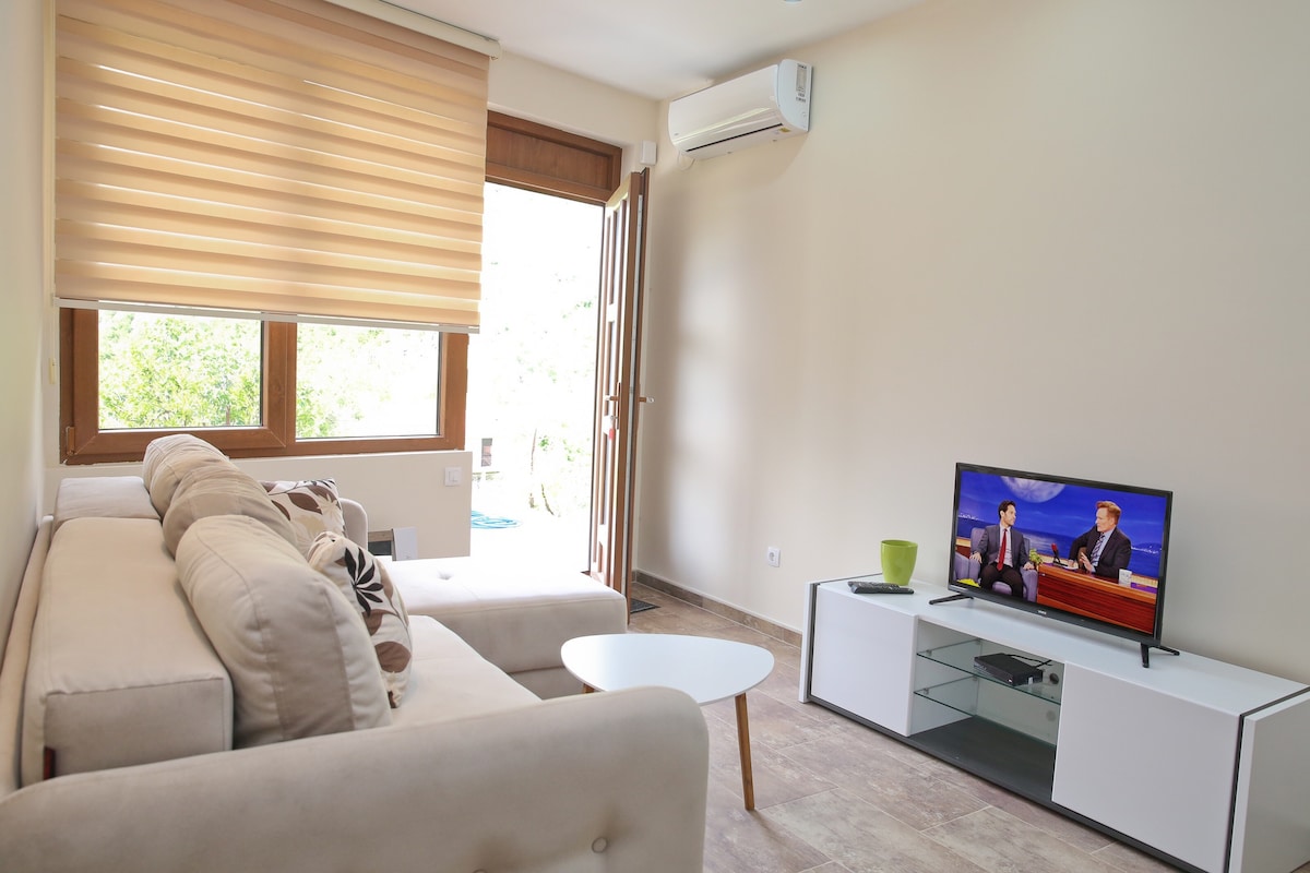Jūros fronto studija idealiai tinka kaip patogi vieta miegoti ir pusryčiauti pagal savo sąlygas iki 3 žmonių. Šis gerai naudojamas 22 m2 plotas idealiai tinka porai su vaiku arba trimis mažais draugais, kurių protas tyrinėja Juodkalniją. Ši visiškai funkcionali studija ką tik atvyko į rinką 2022 m. birželį po visiško renovacijos. Mažos maisto prekių parduotuvės, kelto, dviejų autobusų stotelių ir trijų akmenukų paplūdimių artumas yra puiki nakvynės vieta. Kaip turistas, privalote mokėti turizmo mokestį