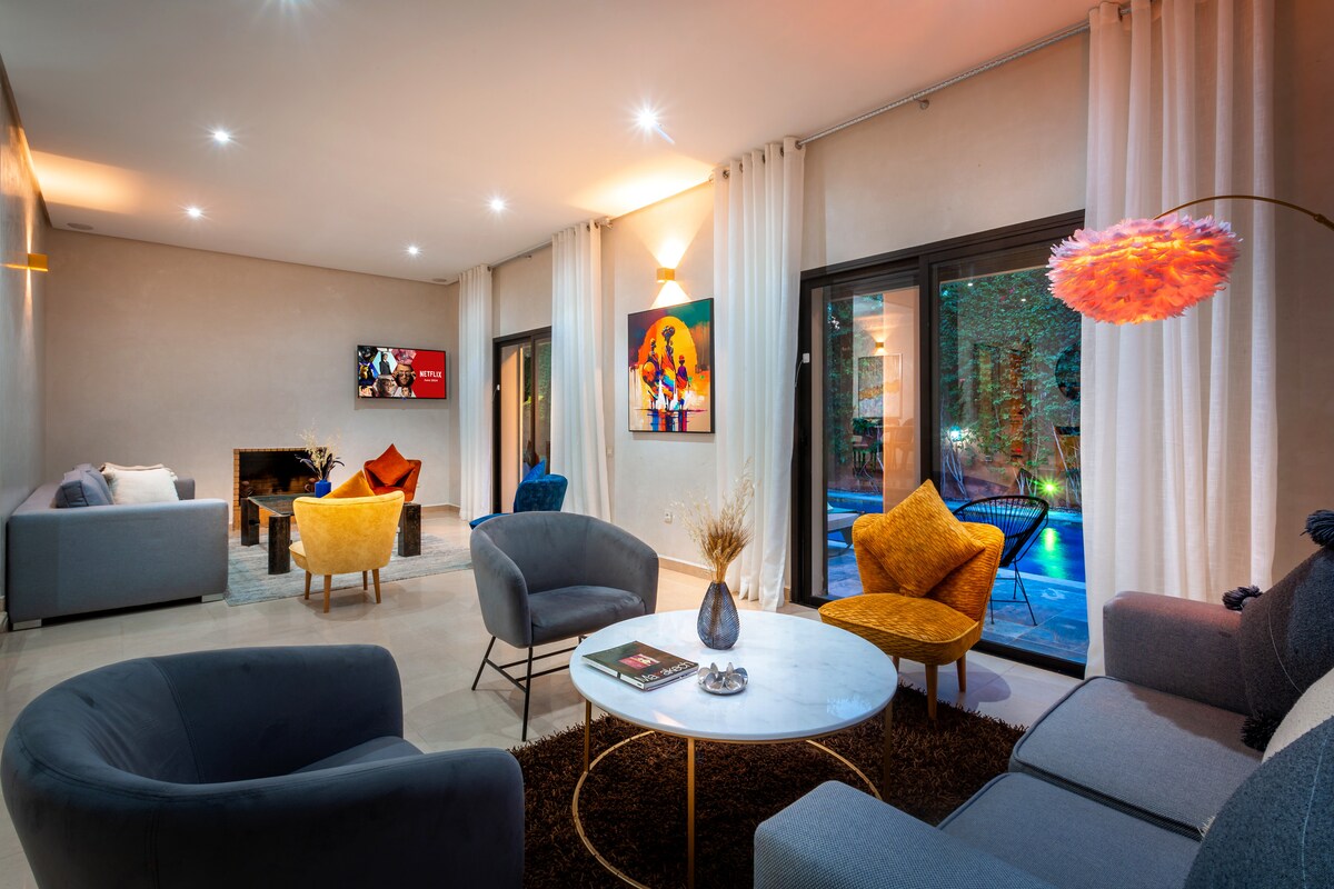 Apsistokite mūsų modernioje viloje su 2 miegamaisiais vos už kelių minučių kelio nuo Marakešo. Atsipalaiduokite prie privataus baseino ir mėgaukitės gražiu sodu su abrikosais. Viloje yra greitas belaidis internetas, išmanusis televizorius ir miegamieji su oro kondicionieriumi, kurių kiekviename yra atskiras vonios kambarys. Yra automobilių stovėjimo aikštelė . Už mažiau nei 20 minučių kelio nuo miesto centro ir tik už 5 minučių kelio nuo prekybos centro „Marjane“ ir „McDonald's“. Puikiai tinka ramiai ir patogiai viešnagei!