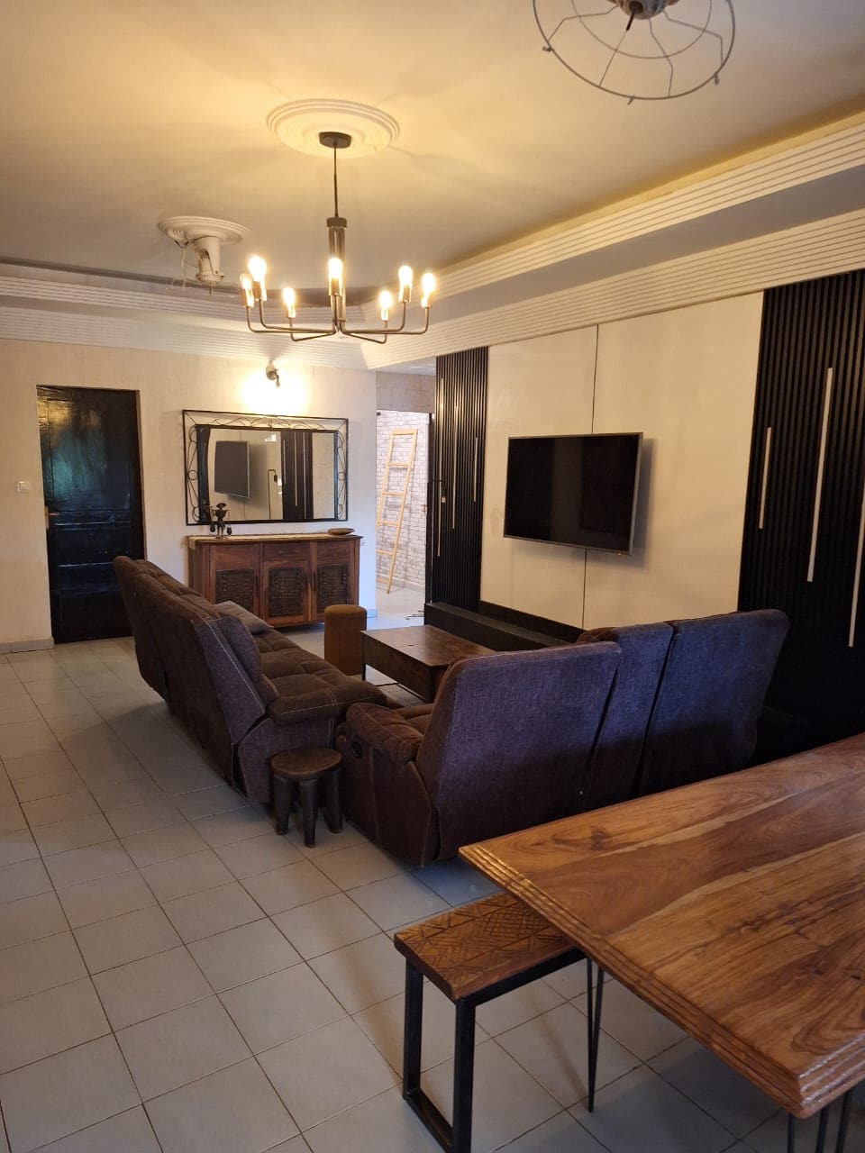 Bienvenue dans une maison moderne! 3 chambres, salon, terasse, jardin privé avec paillote, réserve d’énergie grâce aux panneaux solaires et réserve d’eau pour un confort ininterrompu. Sécurité renforcée avec installations fiables. Proche de l’aéroport international et supermarchés à 5 min. Équipements complets : Wi-Fi, climatisation, cuisine équipée, machine à laver etc. Services additionnels possibles. Idéal pour familles, professionels, courts et longs séjours. Vivez Bamako en toute sérénité !