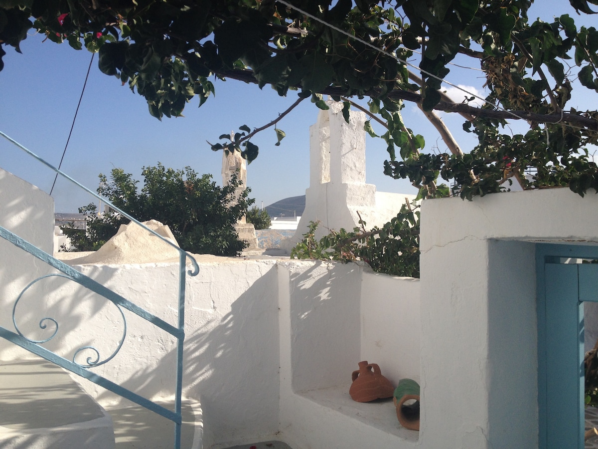 Tradicinio Kikladų stiliaus butas pirmame aukšte su stogo sodu pačioje Parikia gyvenvietės širdyje, 4-7 svečiams. Idealiu atveju jis siūlo ramybę ir atsipalaidavimą bei patogią centrinę vietą. Pėsčiomis: visas įdomus vaizdas (senas turgus, atvira pilis), kepykla, parduotuvės, uostas, autobusų stotis ir taksi stovėjimo aikštelė. Jūra yra už kelių metrų nuo namo, o per 2 minutes pasieksite jūros gatvę, iš kurios atsiveria saulėlydžio vaizdas.