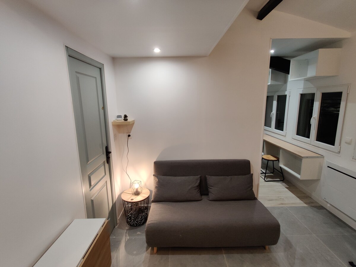 Sveiki atvykę į mūsų gana ramią 16 m2 studiją su terasa ir vaizdu į kalnus! Mėgaukitės patogia svetaine ant dvigulės sofos-lovos su jaukiu čiužiniu. Privati dušo patalpa padidina jūsų patogumą. Puikiai tinka išvykoms, užsisakykite dabar ir mėgaukitės maloniu potyriu! Netoliese rasite gražių pasivaikščiojimų ir levandų laukų.
