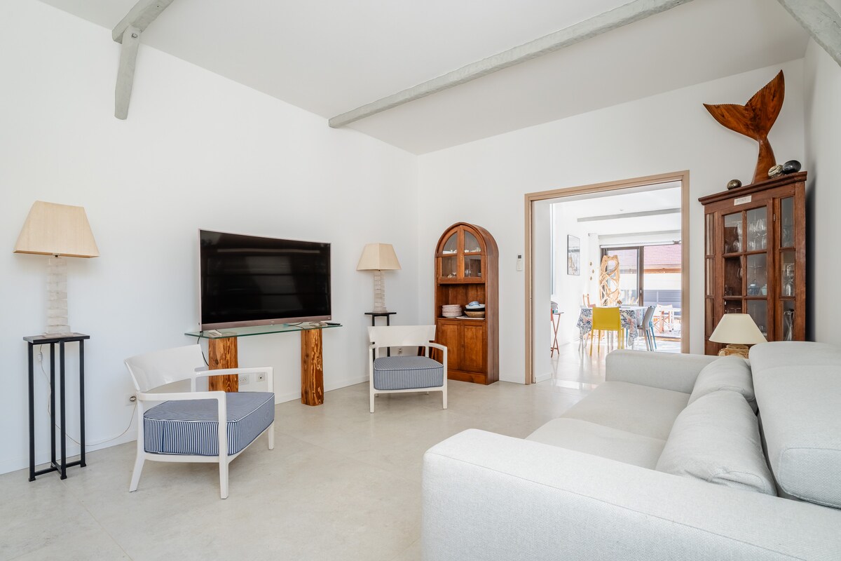 Enjoy a stylish, light-filled, and completely independent two-bedroom apartment with a prime location right on the beach and seafront promenade. Its private terrace, furnished with sun loungers and a spacious dining area, invites you to relax and enjoy al fresco meals. The air-conditioned apartment features a living room with an open-plan kitchen and two bedrooms. The queen-size bed (160 cm) ensures a restful sleep. For your convenience: high-speed Wi-Fi, parking, and bicycle storage.